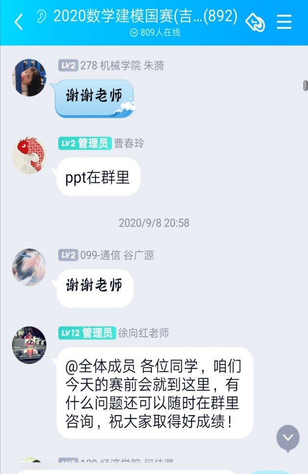 2020年9月上旬,全国大学生数学建模竞赛在即。bb贝博艾弗森官方网站数学建模协会顺应参赛同学的强烈需要和竞赛管理协助的工作要求,结合常态化防疫建议,成功举办了数学建模国赛线上培训活动。