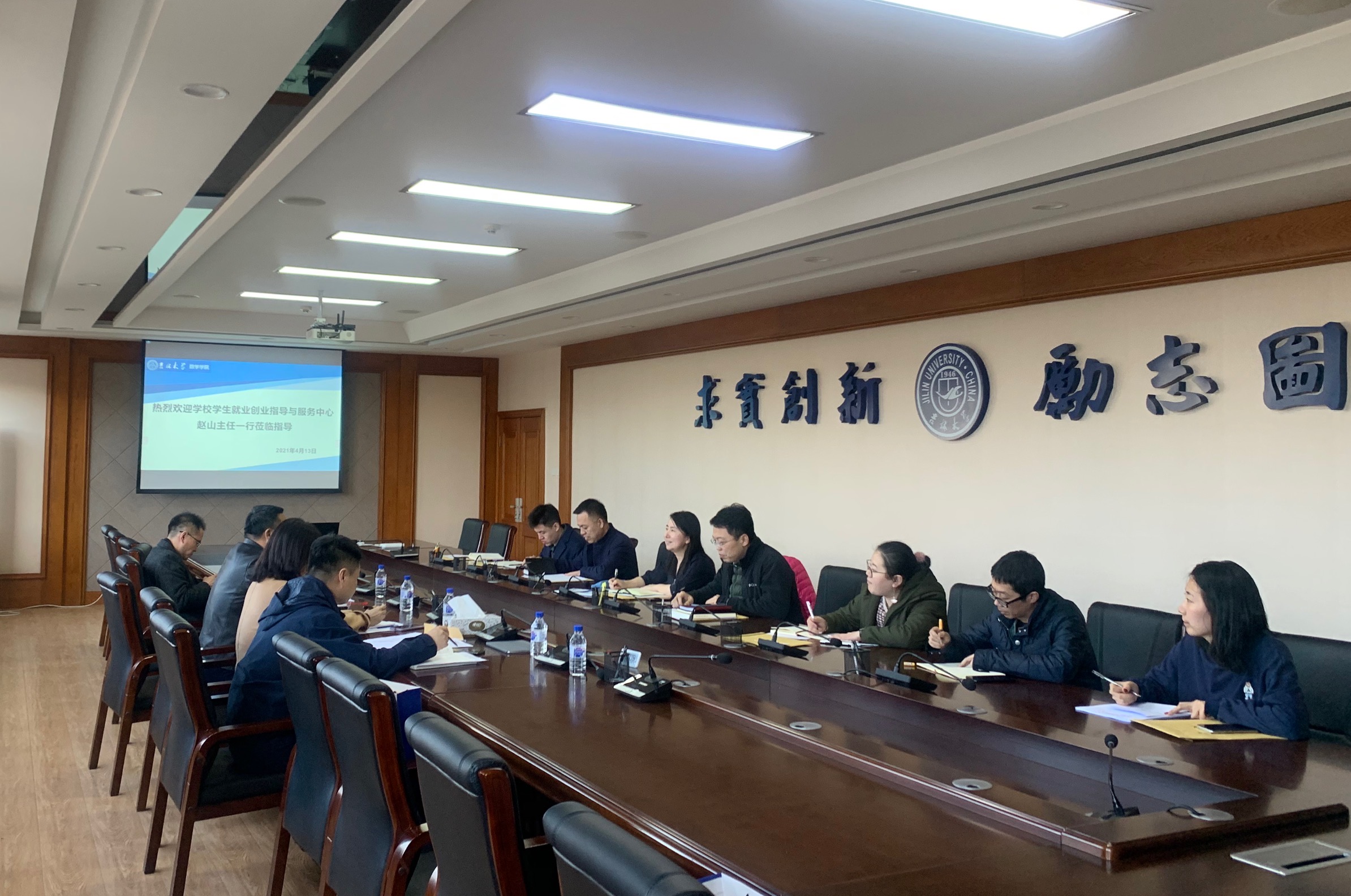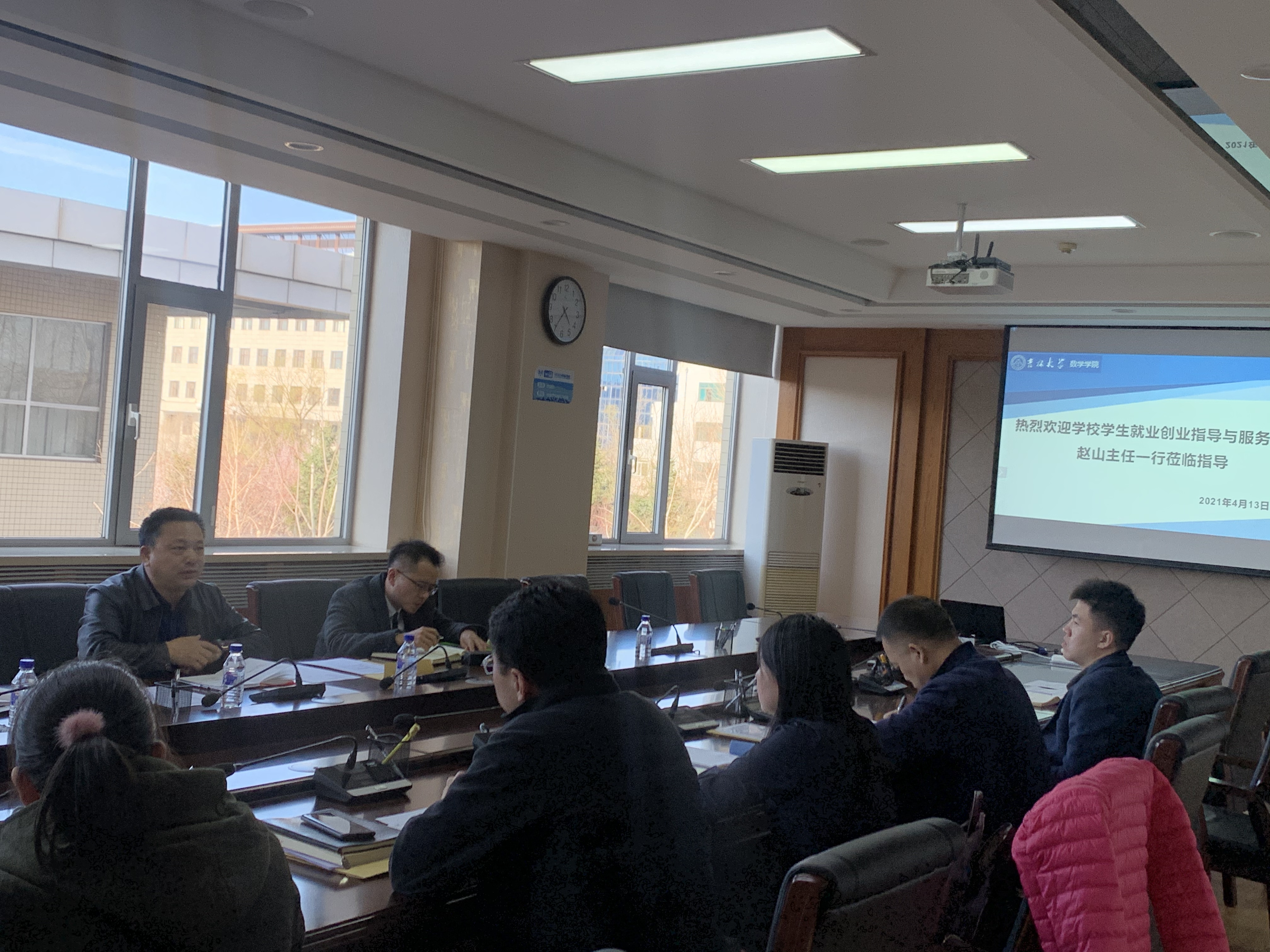 2021年4月13午,学生就业创业指导与服务中心赵山一行来到数学学院,对学生就业创业情况进行专项调研座谈。会议由学院党委书记、院长张然主持。