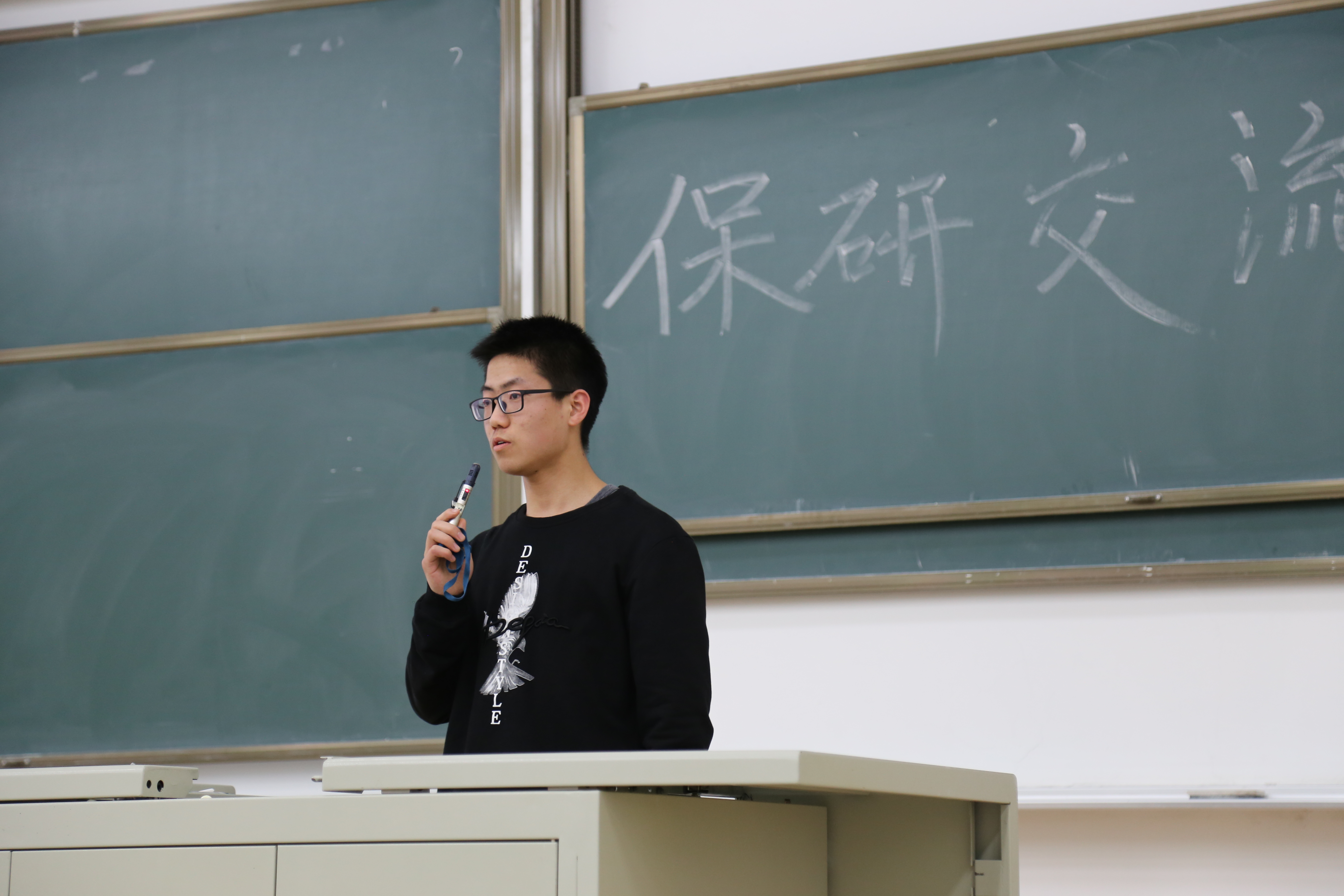 为了向同学们提供保研路上的帮助,bb贝博艾弗森官方网站学生会学业发展部于4月23日晚18:30在逸夫楼第十阶梯教室举办保研经验交流会,邀请了2017级本科生颜苗,宁昕,赵刚,冯雨晨,卢帅帅,郁霜霜,傅琦淏,张雪松,王思喆,王智超,高瑞荧向同学们分享保研的经验和技巧。