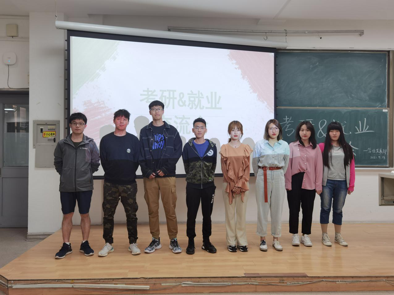 为了给同学们提供考研与就业路上的帮助,bb贝博艾弗森官方网站学生会学业发展部于5月28日晚18:30在逸夫楼第七阶梯教室举办考研—就业经验交流会,邀请了2017级本科生郝擎宇、庞怡然、吴付超、于甜甜、胡梦迪、吴成澳、文逸欣、张晓含、韩萌萌向同学们分享考研与就业的经验与技巧。