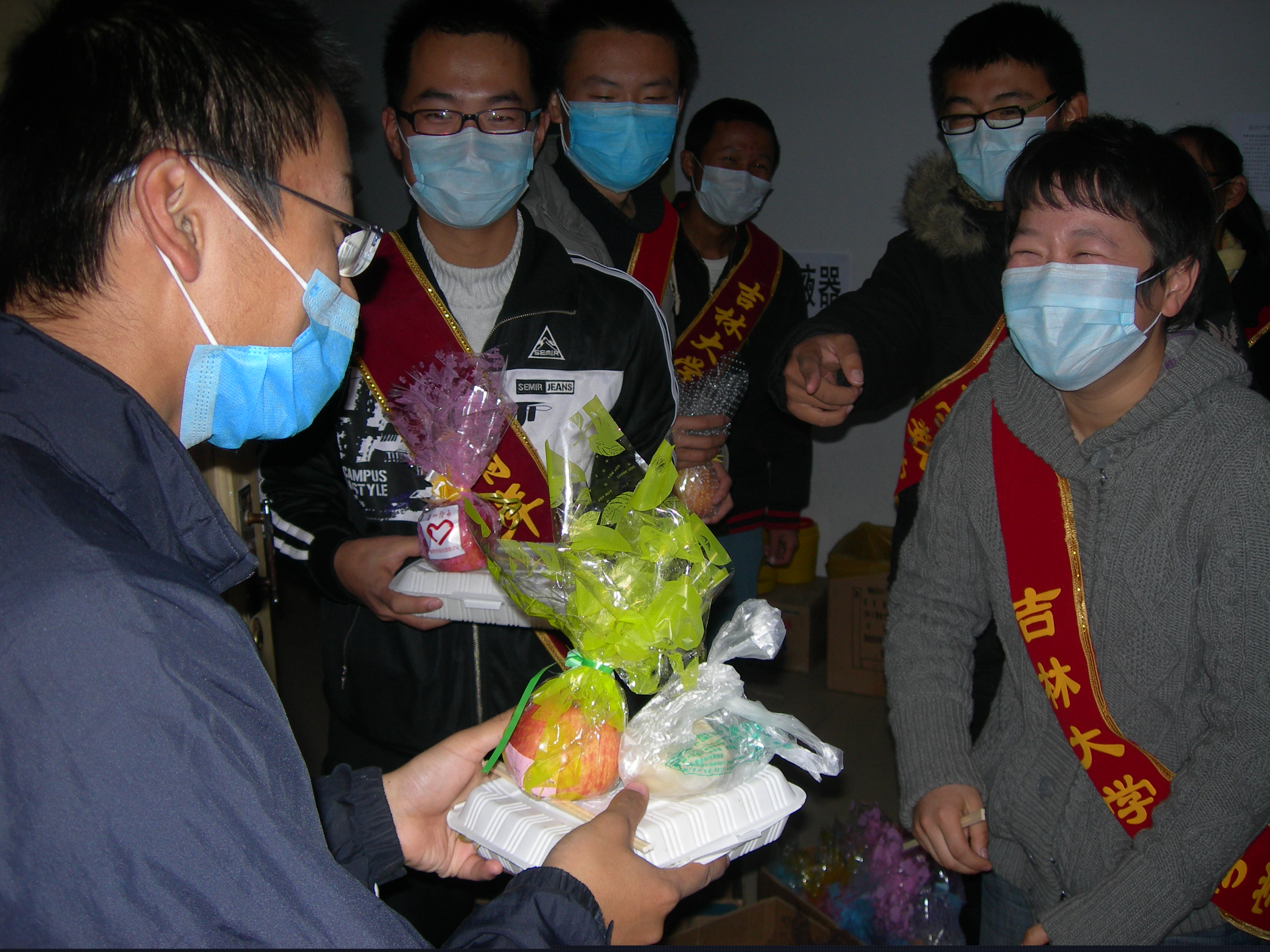 由于近期甲流在全国肆虐,bb贝博艾弗森官方网站爱心阶承青年志愿者协会在校团委抗击甲流的号召下,组织志愿者们将一个个精心包装的爱心苹果送到了大学城的被隔离者以及医护人员手中。