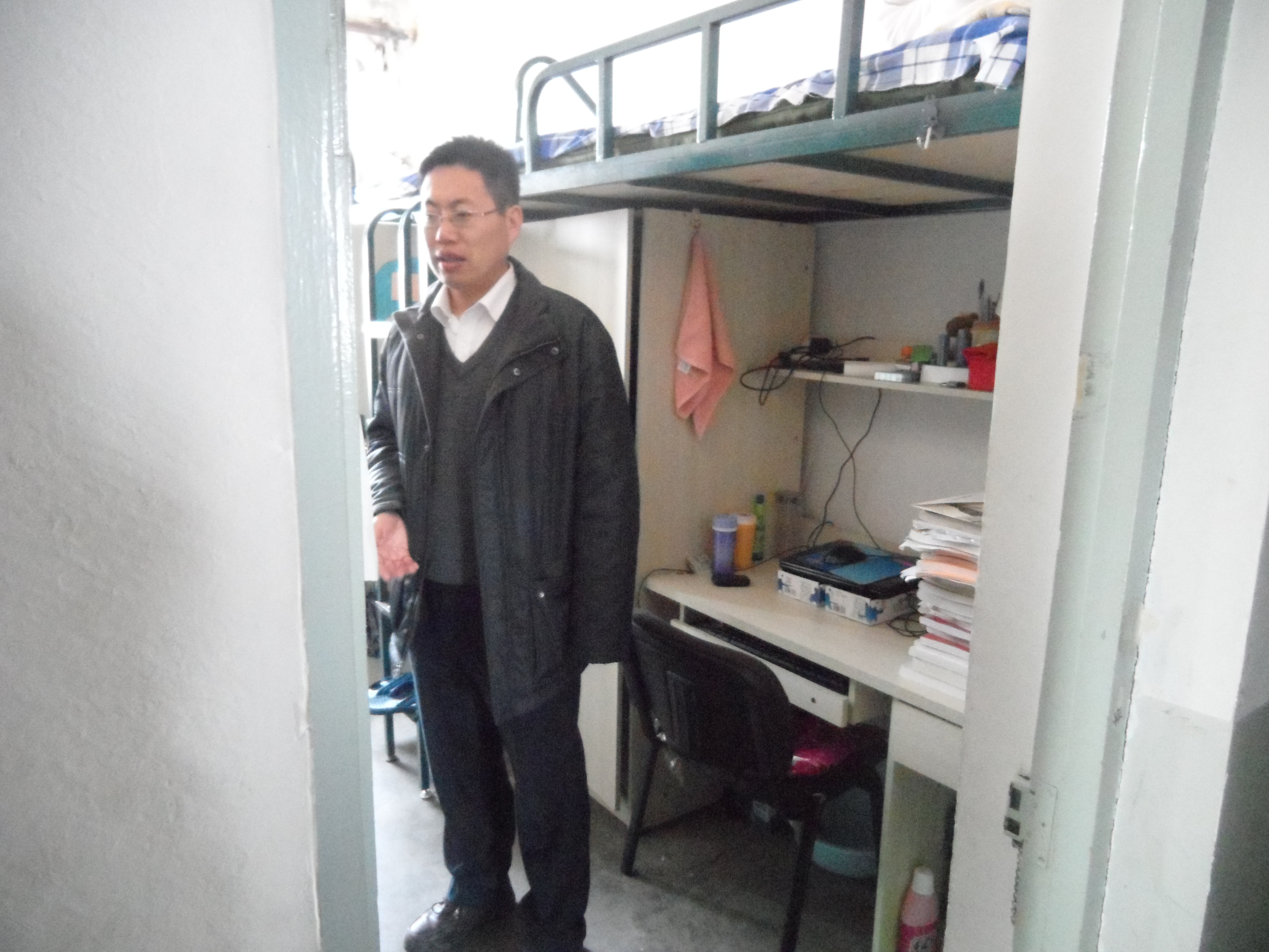 活动从文苑一舍开始,通过南苑和经信,最后在大学城结束。在活动进行期间,赵老师以及三位辅导员老师首先与各寝室学生就学习、生活等方面进行了亲切的交谈并表达对学生的关爱,在查看了各学生寝室的实际状况后,对各学生寝室做了一些点评并就寝室环境卫生问题提出了一些改善的方法,强调防范安全防火隐患,杜绝违章用电行为。还统计了顶层漏水、墙壁发潮等情况,向学校有关部门上报。