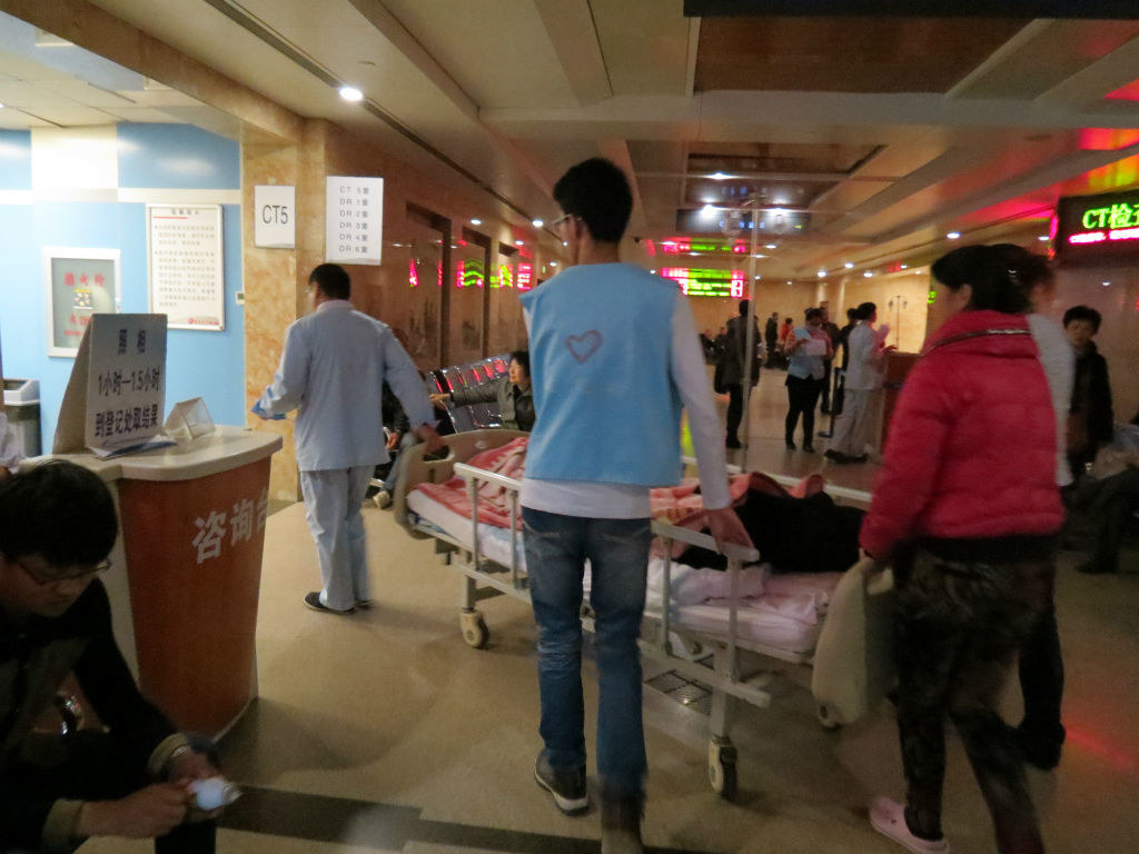 有的志愿者分配到的任务是陪诊,他们一下午都穿梭在各病房之间,陪患者做CT,帮他们推床和轮椅;有的志愿者分配到的任务则是导诊,他们大多都站在前台为患者和患者家属们指导就医路线。在志愿者的帮助下,患者们就诊变得更加容易,减少了许多不必要的麻烦。