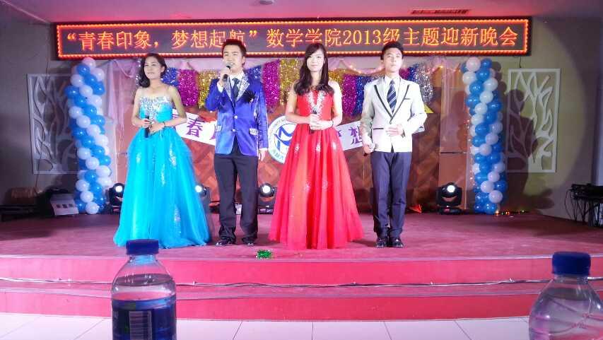 为了迎接2013级新同学,bb贝博艾弗森官方网站学生会文艺部筹划了“青春印象,梦想起航”主题迎新晚会。晚会于11月9日晚6点在莘子园餐厅三楼隆重举行。bb贝博艾弗森官方网站院长李辉来教授,党委书记李晓光教授,副院长邹永魁教授、副院长王德辉教授,公共数学中心副主任张然教授,党委副书记王欢老师,副院长陈续升老师,党委副书记兼副院长赵任老师、任课老师代表、研究生秘书和三位辅导员老师出席了本次晚会 。