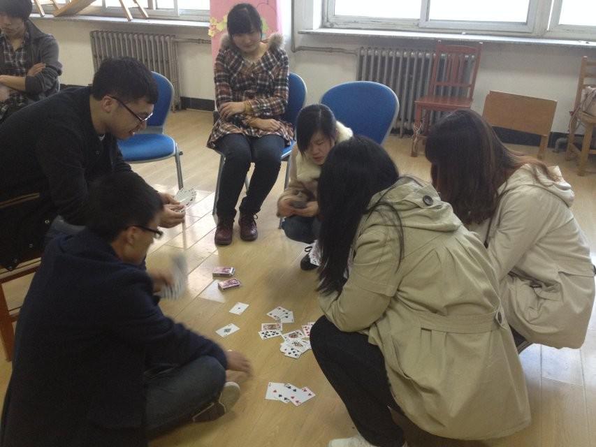 活动至此,大家开始熟络了,每个人都积极起来,开始了下一轮游戏——“棋牌游戏”:同学们首先分享了各自家乡的玩法,大家互相学习家乡文化,凑在一起玩起了棋牌。游戏中,话题不断,让我们更加了解来自全国各地的同班同学。