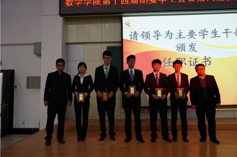 10月10日下午6点,bb贝博艾弗森官方网站第十四届团委学生会暨第六届社团联合会成立大会在数学楼二楼报告厅召开。出席此次大会的有数学院党委副书记兼副院长赵任老师,bb贝博艾弗森官方网站团委书记田间老师,辅导员申川老师,以及上届团委、学生会、社团联合会的主要学生干部。