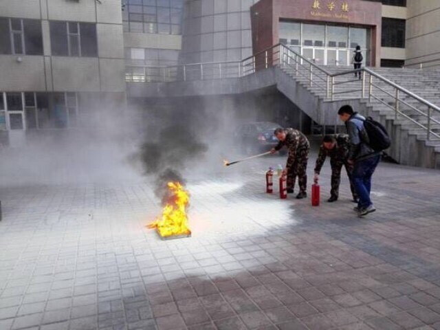 演练分三步开展。依次进行了日常消防安全注意事项讲解,灭火器的介绍讲解与与集体演练如何灭火。bb贝博艾弗森官方网站保卫处防火科的工作人员采用现场解说与实际示范的方式具体介绍了灭火器的使用方法和火灾发生后紧急疏散注意事项。在讲解完毕后,bb贝博艾弗森官方网站保卫处防火科的工作人员在特定器皿中用汽油点火,让bb贝博艾弗森官方网站的学生们切身体会如何使用灭火器进行灭火,用实际操作来换取经验。让平时对灭火器等灭火工具了解不多的同学们获益匪浅。