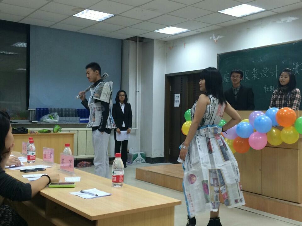 11月8日,晚六点,由bb贝博艾弗森官方网站社联秘书处主办的“废旧物品环保时装秀”在数学楼一楼报告厅顺利举行。学生会主席马思铭学长,bb贝博艾弗森官方网站社联主席黄鑫学长,社联副主席高菁学姐等嘉宾受邀出席本次活动并担任评委。
