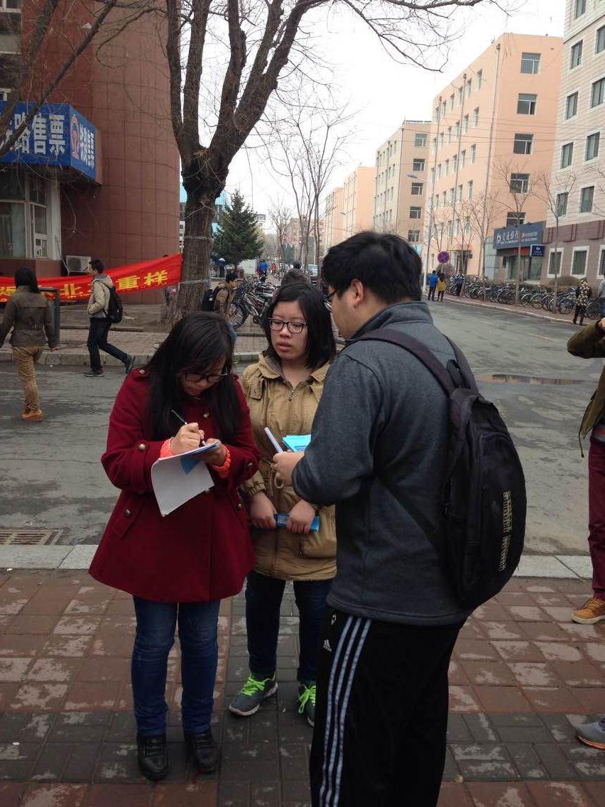 4月2日上午,bb贝博艾弗森官方网站爱心阶承青年志愿者协会派选的两组志愿者同长春晨光公益组织的志愿者们共同在南湖公园、红旗街两个地点完成了校外公益宣传。志愿者们到达地点后,找到适宜的宣传地点并支起宣传海报,很快吸引了大量群众。之后志愿者们进行公益宣讲,并向热心的群众发放传单。上午11点半,两组志愿者分别结束宣传,清理场地。