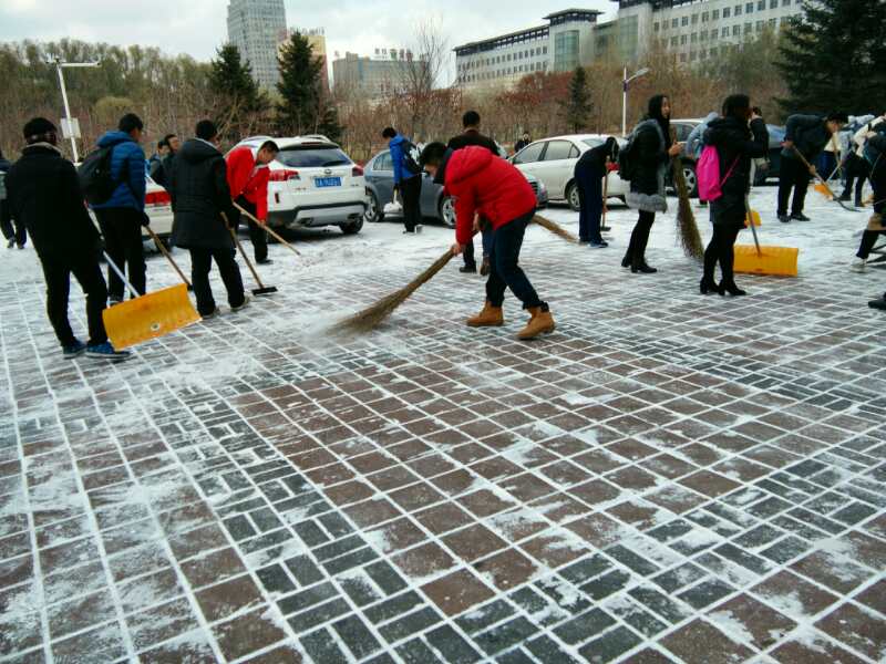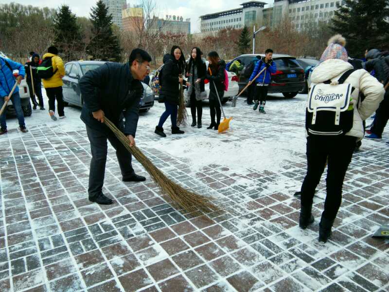 中午十二点,同学们纷纷赶到数学楼前,在分配完扫除工具后,开始了扫雪任务。bb贝博艾弗森官方网站的师生齐心协力,将紧压的积雪铲松,随后堆在路旁。经过一个多小时的努力,数学楼门前的积雪被清理干净,此次扫雪活动也随之圆满结束。