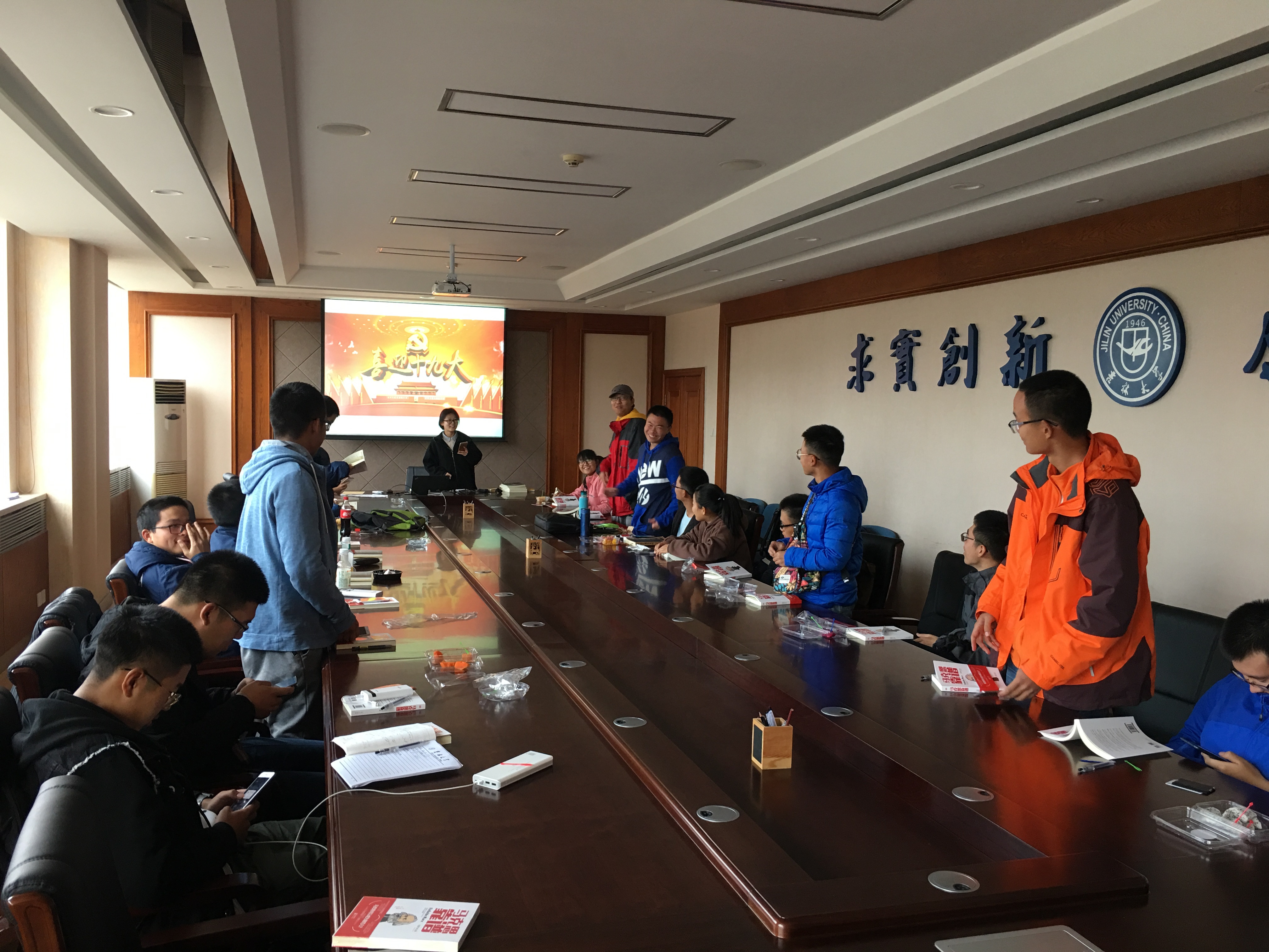 会议期间,同学们积极配合,热情高涨,语出四座,让我们看到了新一代大学生的爱国热情。大家各抒己见,为国家建设出谋划策,大家奇思妙想,预测十九大的纲领变化;大家展开想象,共同勾画未来的宏图。我们邀请到15级团委副书记陈书远学长讲话,他为17级新生详细地解释了我校在校学生如何入党问题,同时,为我们娓娓讲述了中国共产党的发展历程,同学们听得意犹未尽。而后,我们与同学们一起温习了有关党的基本知识,最后,我们一起阅读并讨论了有关马克思和中国共产党的书籍马克思靠谱,并请各班代表发言,届时,许多同学发表了自己独到的想法,让我们眼前一亮,颇为震撼。