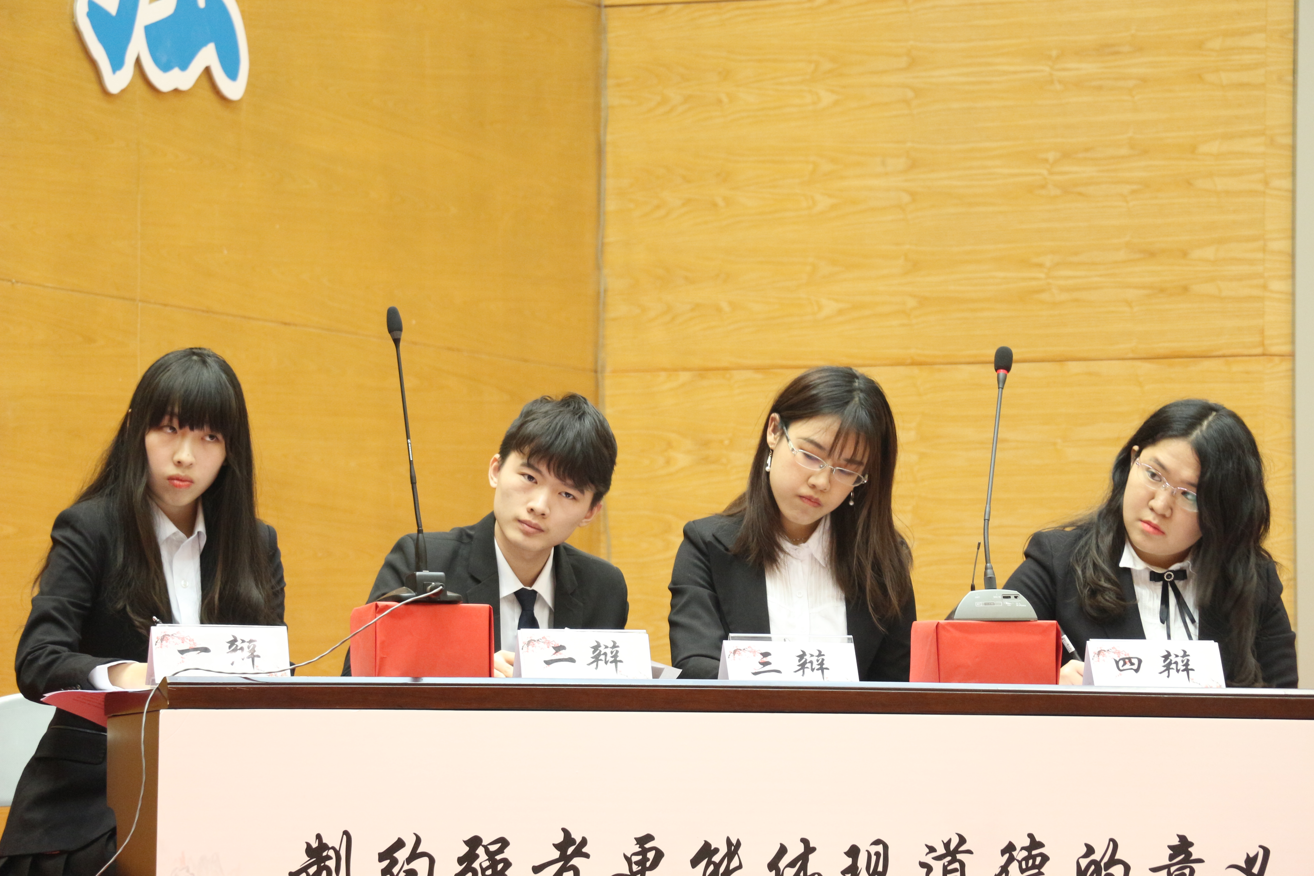 是谁,舌灿莲花,堪使丝竹失色;是谁,唇如利剑,可令管弦无声。在欢呼和呐喊声中决赛拉开序幕,决赛辩题为帮助弱者与制约强者哪一个更能体现道德的意义,bb贝博艾弗森官方网站为反方制约强者更能体现道德的意义。我方一辩辛悦开篇立论提出道德的意义在于促进社会和谐发展,并从维护社会秩序,解决社会矛盾,引导正向价值三个方面掷地有声地陈述。我方二辩俞宁宁紧随其后,幽默生动地重申保护和制约的概念,拆解对方观点。应对质询,从容不迫,灵活地化解了对方的进攻。我方三辩程蕾巧妙发问,从动机过程结果三个角度准确地论述了制约强者所能体现出的道德意义。我方四辩刚铭君字字珠玑,鞭辟入里,动之以理晓之以情,一句“不要人夸颜色好,只留清气满乾坤”声震全场,引得掌声雷动。评委老师从学理的角度阐释了对辩题的理解并对场上辩手提出了表扬。在万众期待中,主席宣布结果,bb贝博艾弗森官方网站荣获冠军!共青团吉林省副书记牟大鹏为bb贝博艾弗森官方网站颁发了奖状以及奖杯。