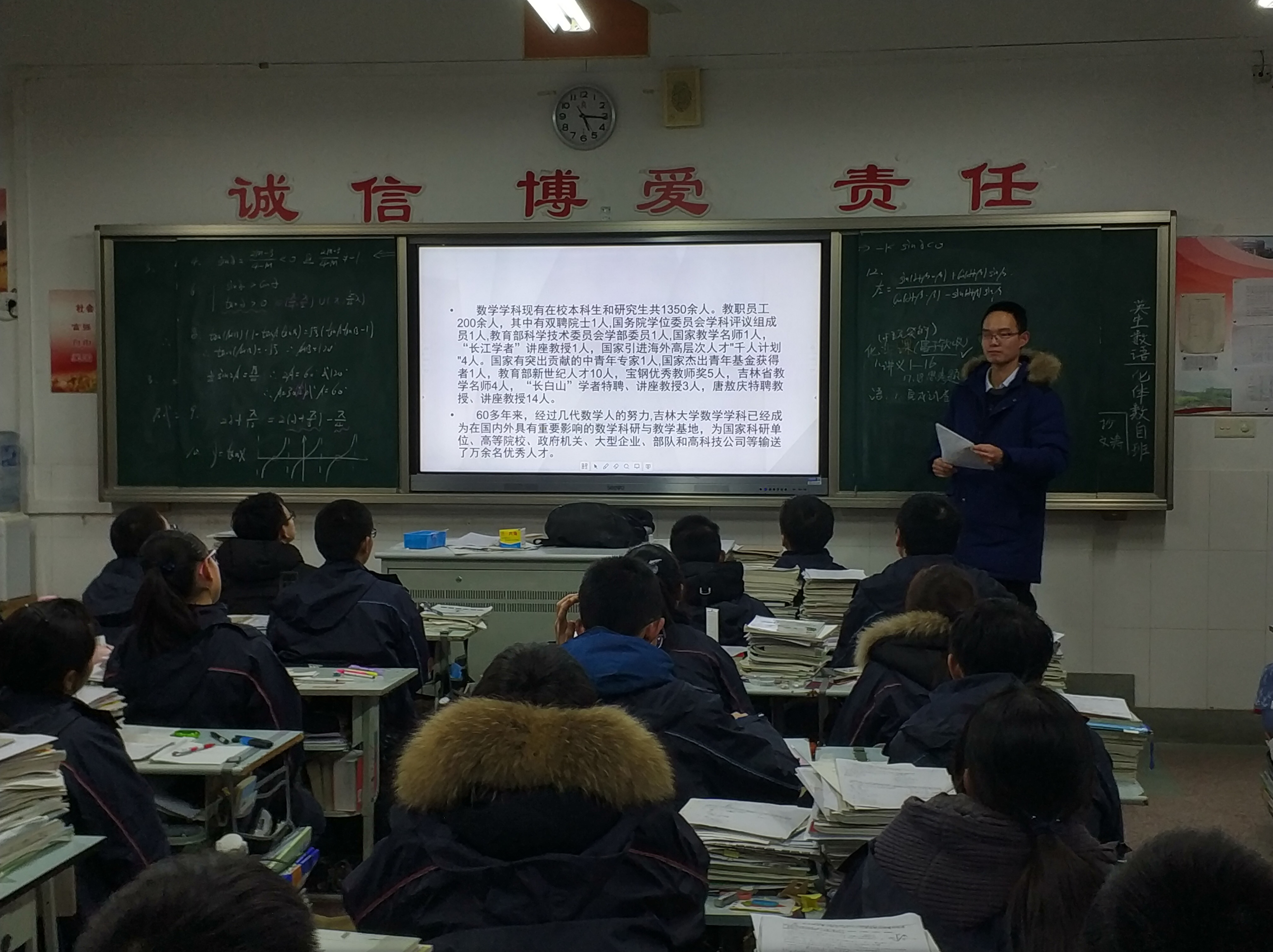 bb贝博艾弗森官方网站101708团支部在寒假期间分别派出三支宣讲队伍前往江苏省天一中学、合肥六中、江苏新海高级中学进行宣讲,宣讲队成员发放了明信片与学校资料书,主要介绍了bb贝博艾弗森官方网站的基本情况,并着重强调了唐敖庆理科试验班的办学特色和bb贝博艾弗森官方网站的相关情况,包括学校强势学科,获得的荣誉,学校在全国高校的地位,以及我校试验班的安排。以江苏新海高级中学为例,他们向面临高考的高三学子介绍学长学姐眼中的大学,展现最真实的大学现状,向高三学子介绍学长学姐眼中的大学。本次活动突出bb贝博艾弗森官方网站在高考报考中对于考生的高性价比,同时将bb贝博艾弗森官方网站较为优越的学科条件,过硬的学校设备以及强大的师资队伍宣传给高三学子,提高了bb贝博艾弗森官方网站作为优质学校在当地的知名度。成员们还与学弟学妹们分享了bb贝博艾弗森官方网站的一些照片,学弟学妹们不时为bb贝博艾弗森官方网站的优美环境发出阵阵赞叹。