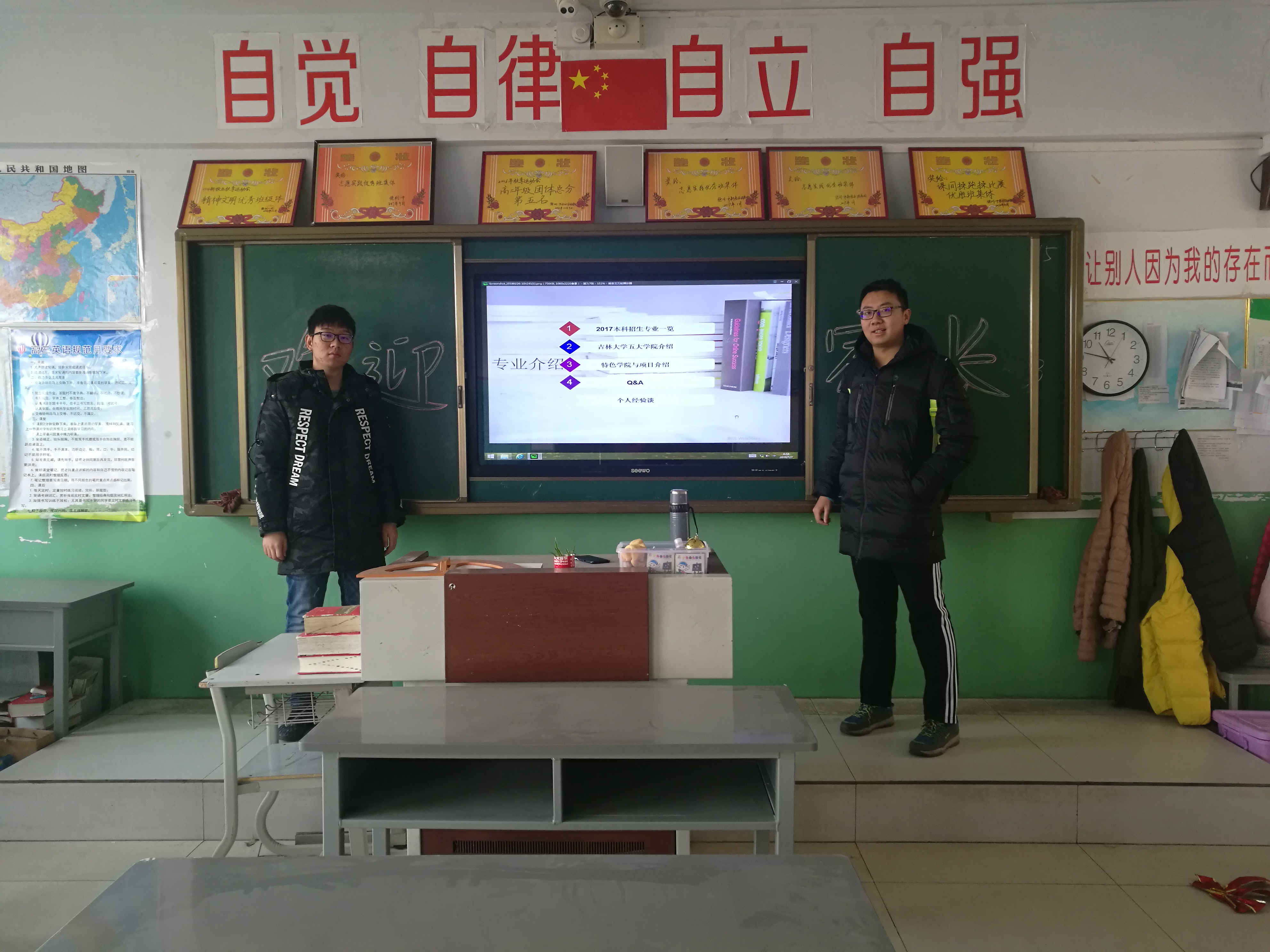 bb贝博艾弗森官方网站101612团支部在寒假期间分别派出三支宣讲队伍前往江苏省运河中学、山东省德州市第一中学、河北省保定市第一中学进行宣讲。宣讲队成员选择了形式丰富的宣讲形式。队员们首先通过发放宣传单、张贴海报等形式让同学们对我校有了一定了解并激发了同学们对我校的兴趣。在正式宣讲的过程中,队员们提前准备好了PPT、视频等资料,即使现场突发状况无法使用PPT,也利用投影仪将手机中的吉大美景放给大家看。队员们从bb贝博艾弗森官方网站的过去讲起,介绍了校徽校训,简要讲述了我校的校史,充分调动了同学们的积极性。另外,队员们还在其中穿插了对唐敖庆,匡亚明,李四光三位先生生平以及对bb贝博艾弗森官方网站贡献的介绍,并自然的引入了bb贝博艾弗森官方网站的多样化专业。队员们以“开来”为题,还介绍了bb贝博艾弗森官方网站现在的学科发展以及师资力量,然后对bb贝博艾弗森官方网站近几年在江苏省、山东省、河北省的招生情况做出了简要分析并就同学们关心的问题进行解答。