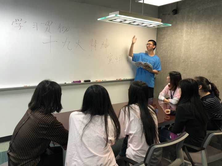 bb贝博艾弗森官方网站15级唐敖庆班为宣传我党最新精神,学习十九大内涵,于出国交流学习期间在佐治亚理工学院开展“青春心向党,莘莘学子情”系列宣讲活动,为广大外国师生带去十九大最新解读,并共同学习十九大精神,研读十九大报告。