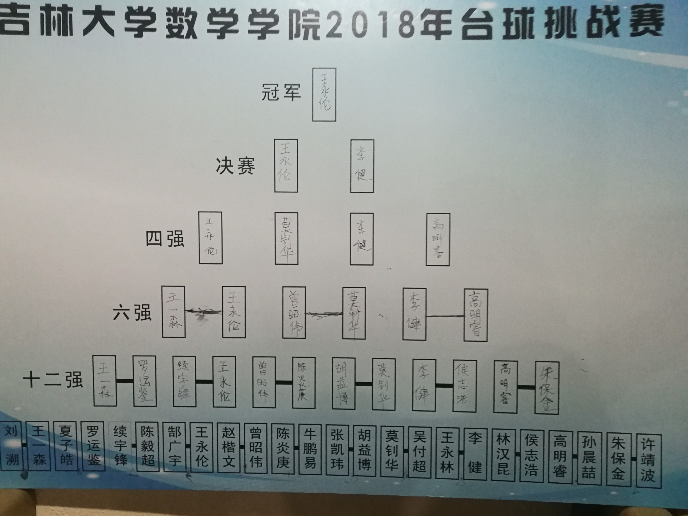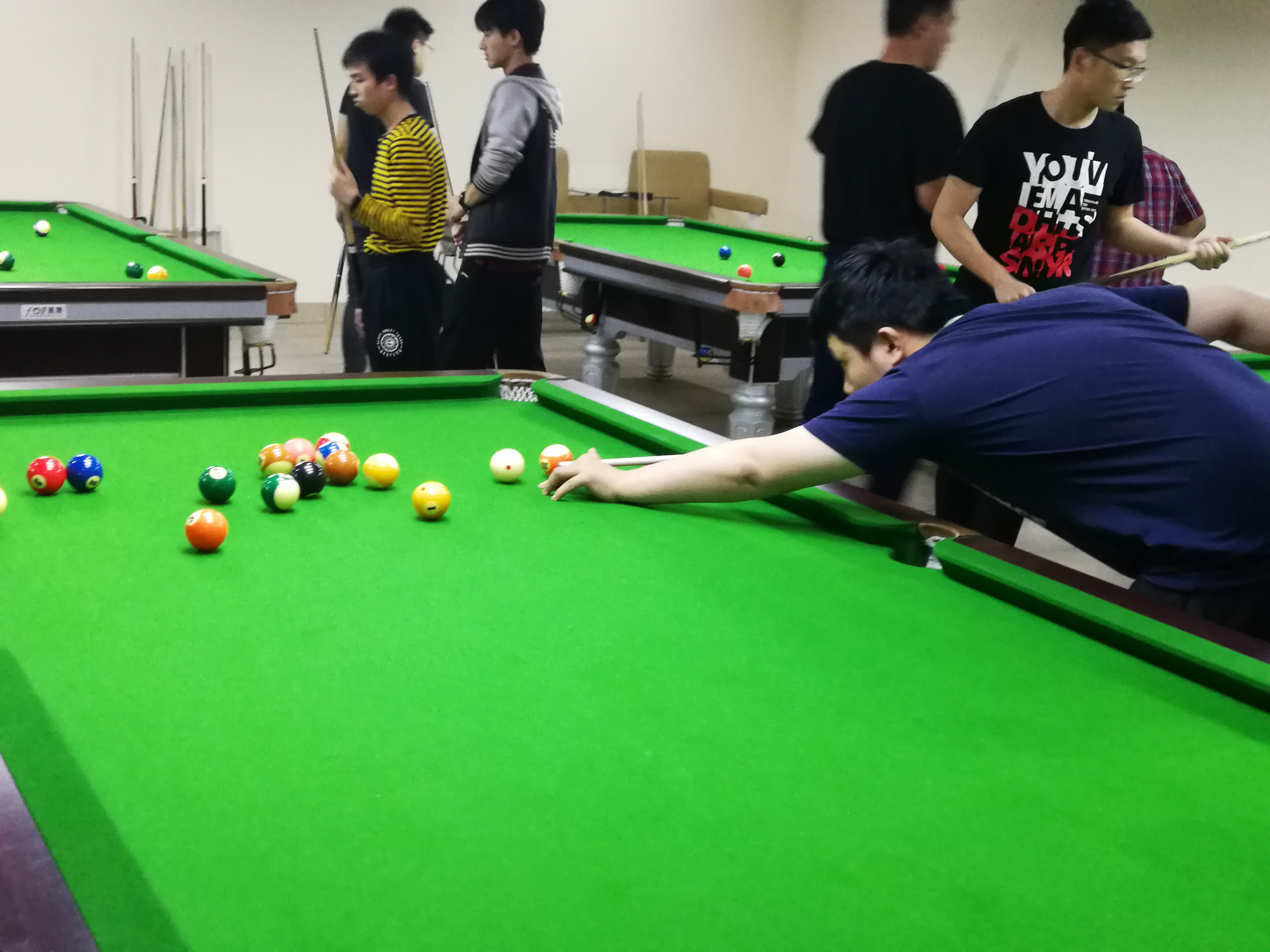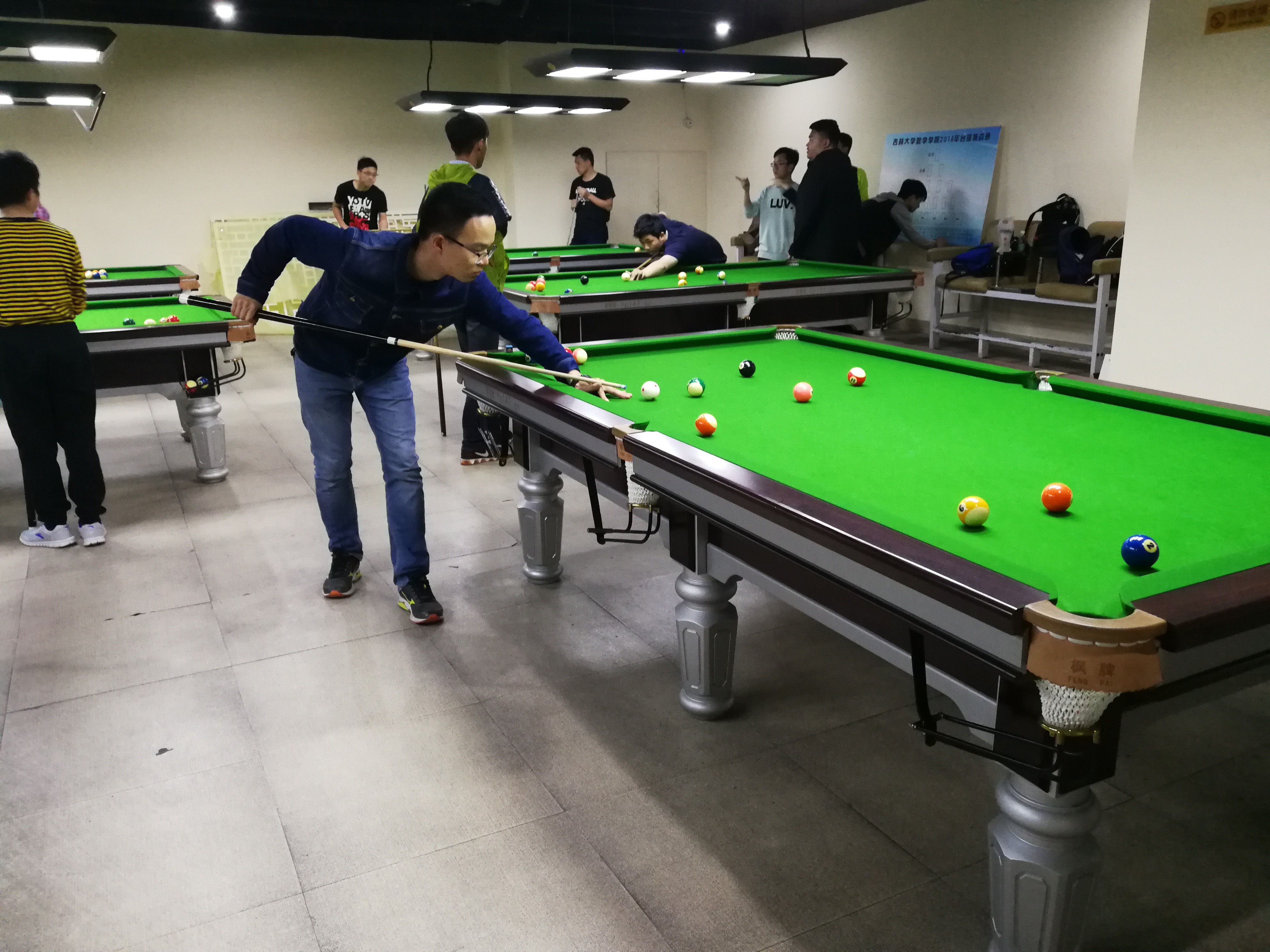 5月19日下午一点钟,bb贝博艾弗森官方网站台球赛在日新楼四楼的台球厅内正式开始,首轮24进12与次轮12进6的比赛并无太大波澜,几大夺冠热门均轻松战胜各自对手晋级下一轮。