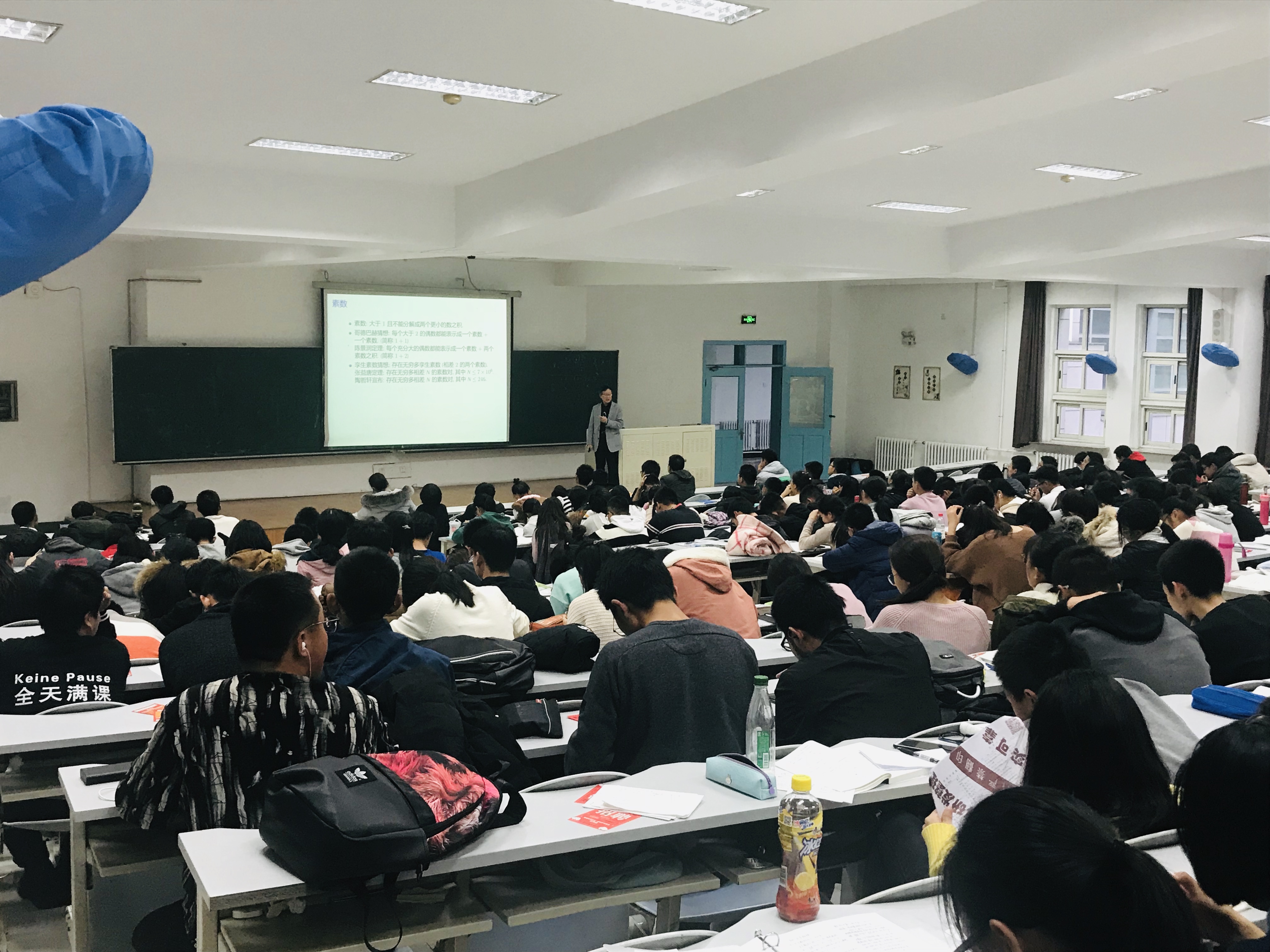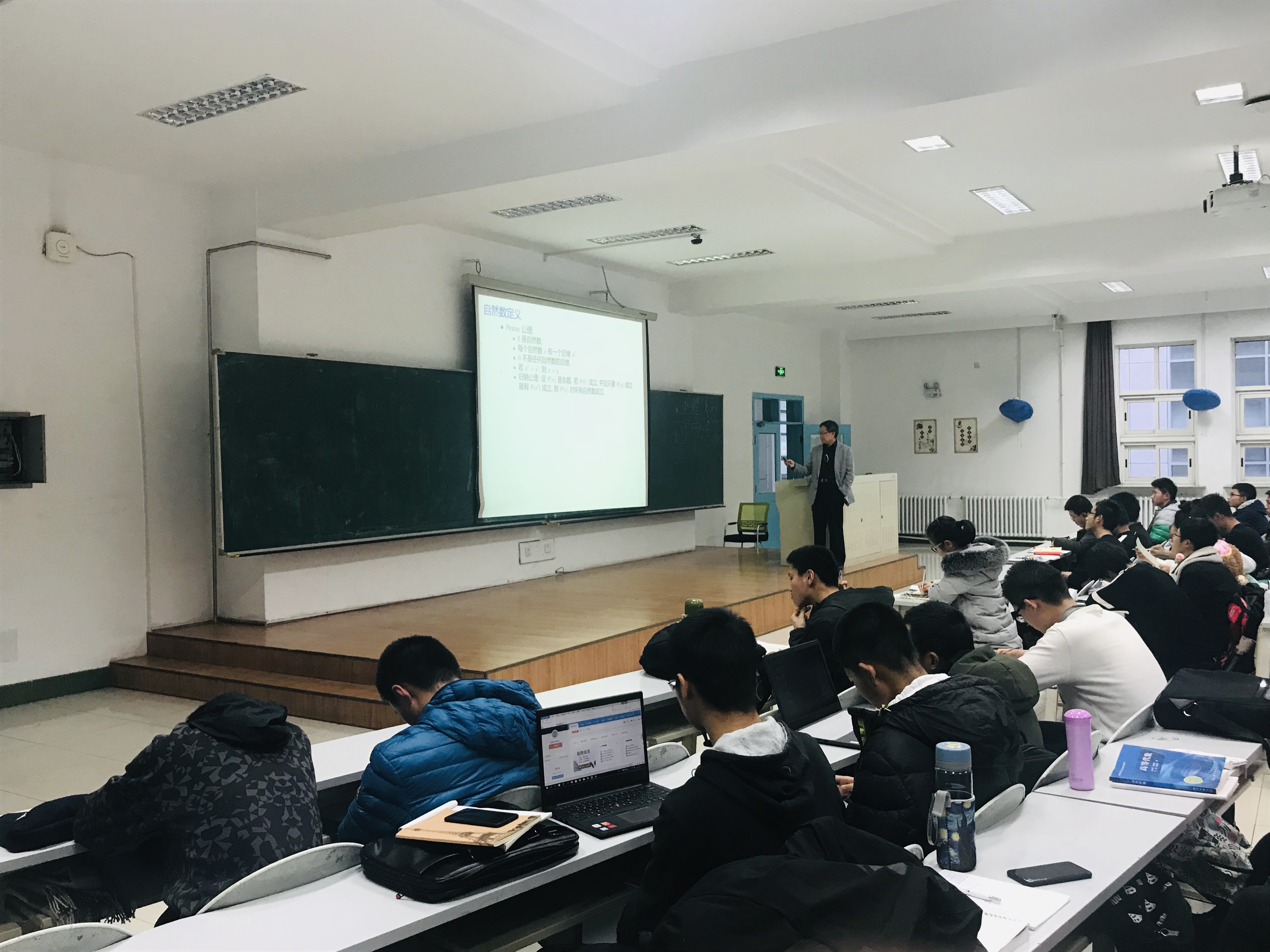 2018级全体同学参加了本次活动,数他们来说都是十分熟悉的,在本次活动中,杜老师以自然数为切入点,谈及了关于0到底是否属于自然数的两种观点,介绍了与自然数定义相关的Peano公理和冯诺依曼序数。关于素数,杜老师向同学们讲述了黎曼猜想,随之又依次引出了整数、有理数、实数与复数,一环扣一环,让我们对于自己有所了解的数有了更为深刻的认识。在此之上,杜老师也为我们延伸了代数数与超越数的相关知识。此外,杜老师还借助“有没有比复数更广的数?”这一问题为我们引出了四元数、Cayley-Dickson构造等超复数有关的知识点。在最后,杜老师还向我们介绍了超限数——基数以及非标准数的相关内容。