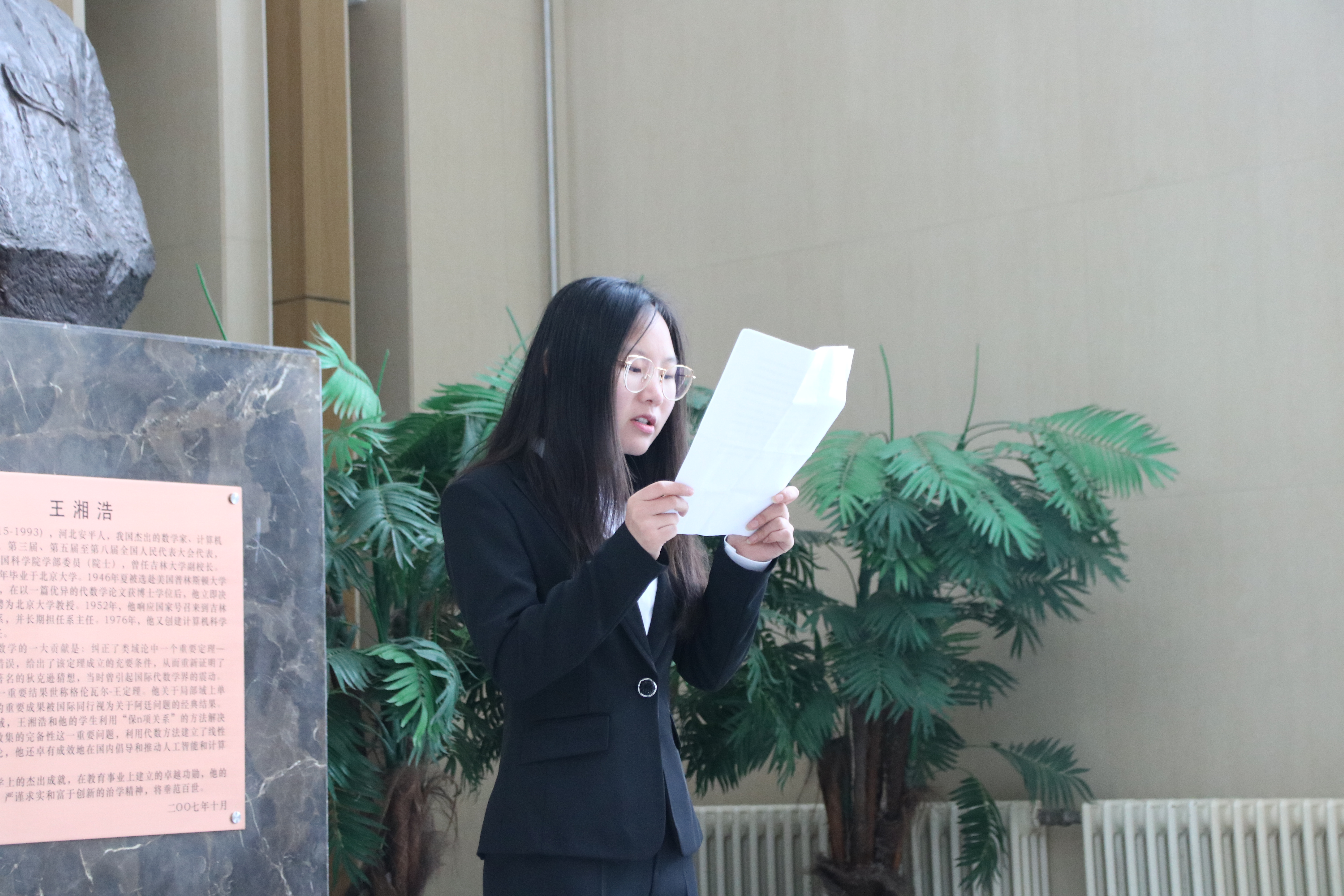 上午九时许,全体人员怀着庄严而肃穆的心情来到王湘浩院士塑像处列队。上午十时,活动正式开始。首先,bb贝博艾弗森官方网站孙宇新作为学生代表介绍了王湘浩院士的生平及其为我国数学学科发展和数学教育方面做出的卓越贡献。在1952年响应国家号召来到东北人民大学(bb贝博艾弗森官方网站前身)先后建立了数学系和计算机系,为bb贝博艾弗森官方网站数学、计算机学科的建设与发展做出了不可磨灭的贡献。之后bb贝博艾弗森官方网站刘东旭作为学生代表擦拭塑像及底座上的浮尘。王湘浩院士塑像目光炯炯,仿佛看到了未来bb贝博艾弗森官方网站灿烂美好的明天。最后学生代表依次向塑像敬献鲜花并全体默哀表达对先驱的追思。