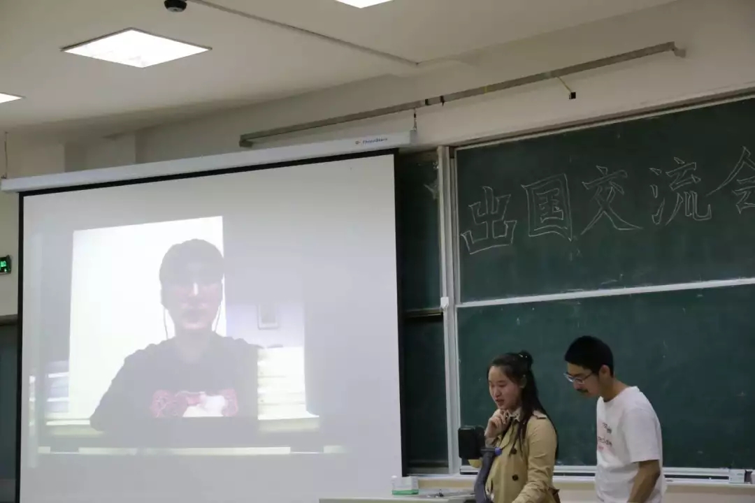 本次交流会,我们使用第二现场,取得了非常好的效果。我们在会场联系了即将前往哥伦比亚大学的王高瞻学长,他通过视频和在场的学弟学妹们沟通交流,答疑解惑,并详细介绍了他大一到大三的学习经历,以及对有出国意愿的同学们的期待。