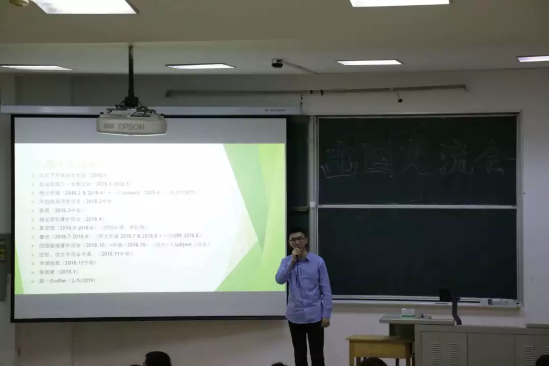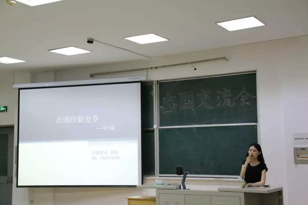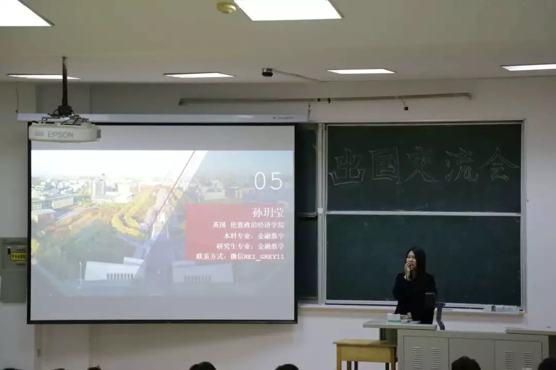 姜蕴恒学姐向我们详细地介绍了出国的申请时间表以及注意事项。梁思蕴学姐分享了她申请南加利福尼亚大学研究生的经历以及她对出国的看法,为想要报考金融数学方向的学弟学妹提出了几点建议。即将前往到美国宾夕法尼亚州立大学的严泽田学长则告诉我们要正视自己的位置,要有目标并为之向前努力。周雨锡学姐认为数分和高代是我们以后实现梦想的基石,并分享了她的面试技巧。孙玥莹学姐重点强调了英语的重要性,让我们及早确定自己以后的发展方向。蔡建哲学长为我们讲述了他出国的原因,以及申请美国波士顿大学的准备工作。李俏学姐则为我们播放了新加坡国立大学宣传片,其次分享了她在选择统计学还是金融数学研究方向的思考。