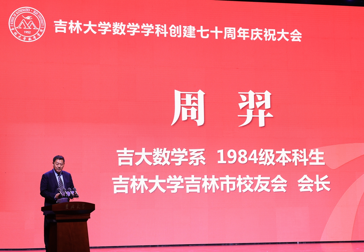 方复全,戴永久,吉大数学系1984级本科生、bb贝博艾弗森官方网站吉林市校友会会长、吉林长荣农副产品有限公司董事长周羿作为校友代表发言时回忆了在吉大求学难忘瞬间,深情表达了对母校和恩师的感激之情。他们衷心祝愿吉大数学发展越来越好,培养出更多优秀人才,也将尽己所能为母校的发展贡献力量。
