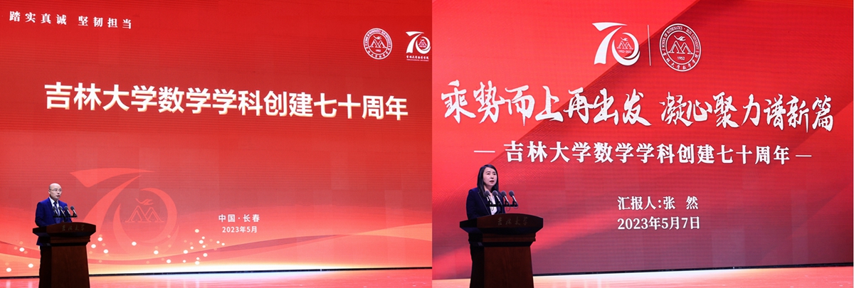 教师代表生云鹤、学生代表李喆溪分别发言,他们重温历史,追忆往事,表示要秉承“求实创新 励志图强”的校训精神,践行“人比山高 脚比路长”的理想信念,以求实的态度、创新的理念、励志的精神奋发图强,以前辈们为榜样,续写吉大数学的绚丽华章,再创吉大数学的灿烂辉煌。
