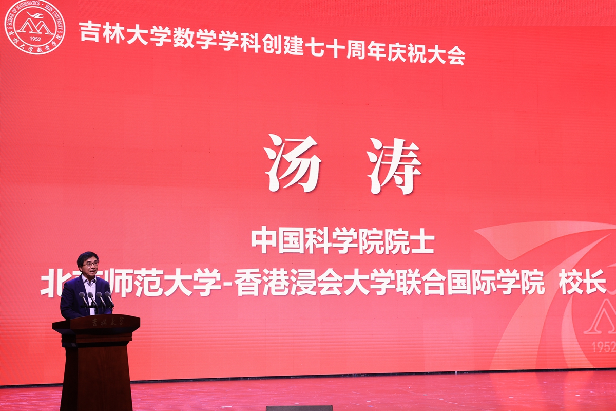 汤涛在致辞中表示,吉大数学学科有着辉煌的历史,学科创始人和先驱们更是中国数学界杰出的领军人物。几十年来,bb贝博艾弗森官方网站数学学科桃李天下,为我国培养出大量数学学科人才,这得益于吉大数学学科前辈创造的人才培养模式。如今,吉大数学学科已经进入快速发展时期,学科建设成绩斐然,人才培养成就显著,科研成果不断攀升,推动了整个东北地区乃至全国的数学发展。他祝愿吉大数学青春常在,不断前进,为我国数学领域的基础研究、人才培养、应用推广提供更多新动力。