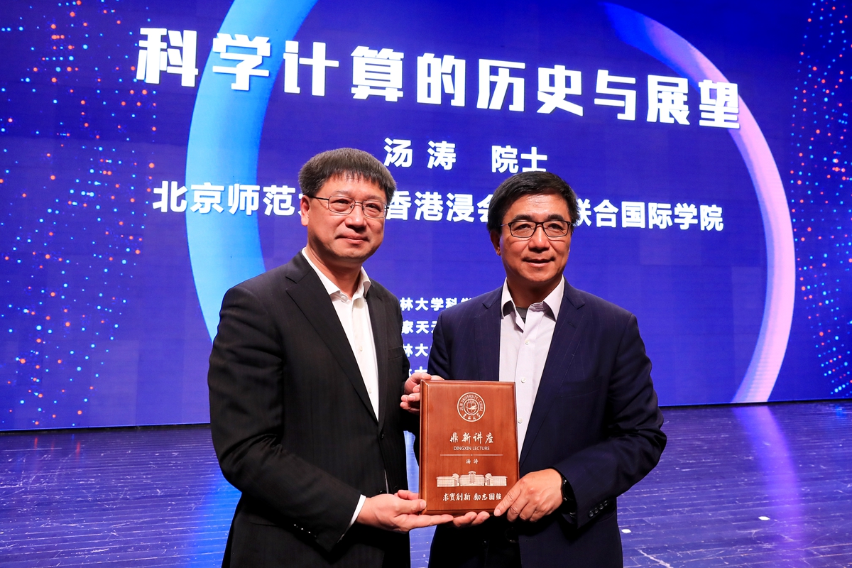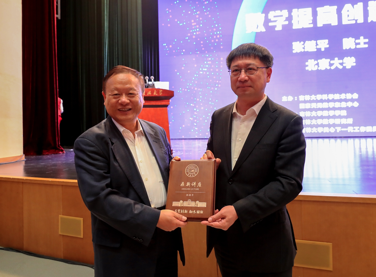 5月7日,中国科学院院士、中俄数学中心主任张继平,中国科学院院士、北京师范大学——香港浸会大学联合国际学院校长汤涛受邀参加bb贝博艾弗森官方网站数学学科创建70周年庆祝活动并做客bb贝博艾弗森官方网站鼎新讲座,两位院士分别以“数学提高创造力”“科学计算的历史与展望”为题,为吉大师生带来精彩的学术分享。中国科学院院士、bb贝博艾弗森官方网站校长张希为张继平院士、汤涛院士分别颁发“鼎新讲座纪念牌”。