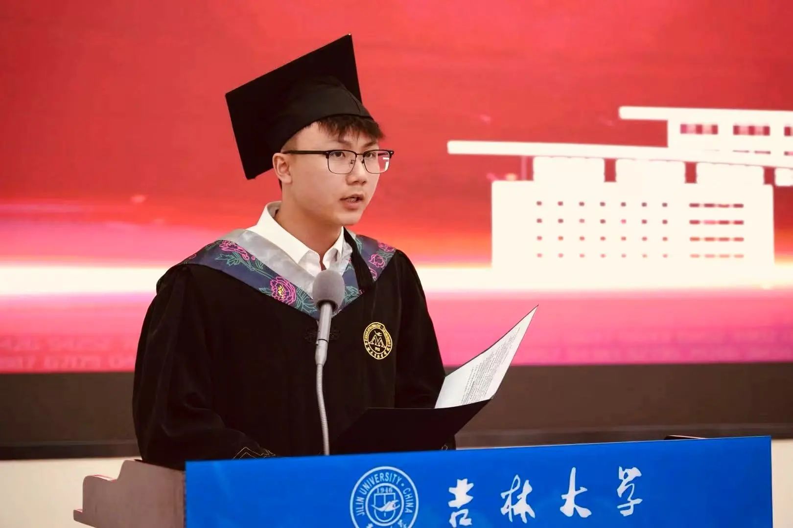 本科毕业生代表唐迪尔,研究生毕业生代表郑旭东先后发言,他们回忆难忘的大学时光,畅谈求学的感悟体会,表达了对母校和母院的深深热爱、感激与不舍。他们将带着吉大数学人的信念和精神,坚持不懈为全面建设社会主义现代化国家贡献青春力量。