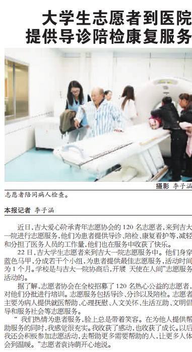 今天《长春晚报》报道bb贝博艾弗森官方网站志愿者走进吉大一院