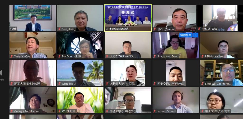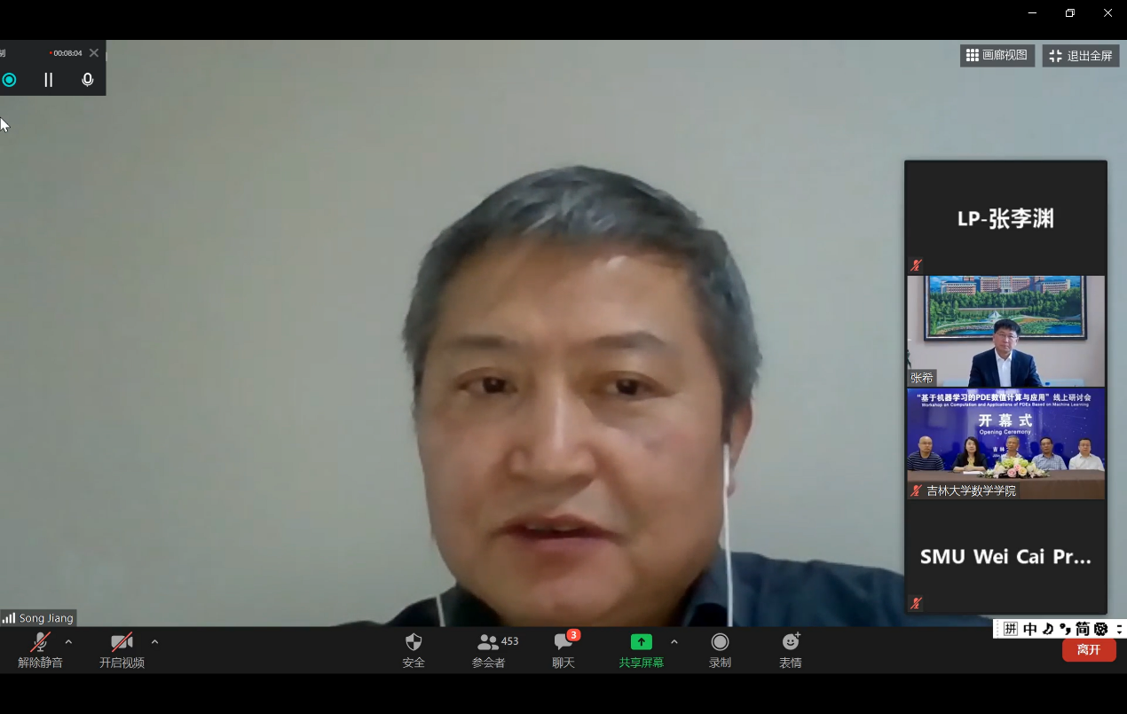 跨越时空,“云”上相聚。2020年7月13日,由国家自然科学基金数学天元基金和bb贝博艾弗森官方网站共同资助,国家天元数学东北中心和bb贝博艾弗森官方网站联合承办的“基于机器学习的PDE数值计算与应用”研讨会在线举行。本次研讨会由基金委数理学部主任江松院士召集,来自普林斯顿大学、布朗大学、哥伦比亚大学、洛桑联邦理工学院,北京大学、浙江大学、复旦大学、上海交通大学、bb贝博艾弗森官方网站等国内外百余所高校的800余位专家学者和学生齐聚云端,共享学术盛宴。bb贝博艾弗森官方网站校长张希院士,基金委数理学部主任江松院士出席了线上研讨会开幕式并致辞。
