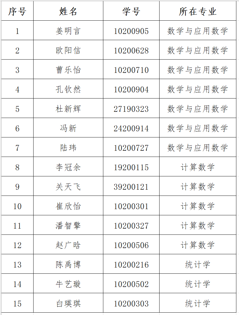 按照《bb贝博艾弗森官方网站2024年招收优秀应届本科毕业生直接攻读博士学位研究生校内预选工作的通知》有关要求,经学生自愿报名、资格审查、推免工作小组会议讨论等环节,确定姜明言等15名同学为bb贝博艾弗森官方网站2024年招收优秀应届本科毕业生直接攻读博士学位研究生校内预选拟推荐人选。名单如下: