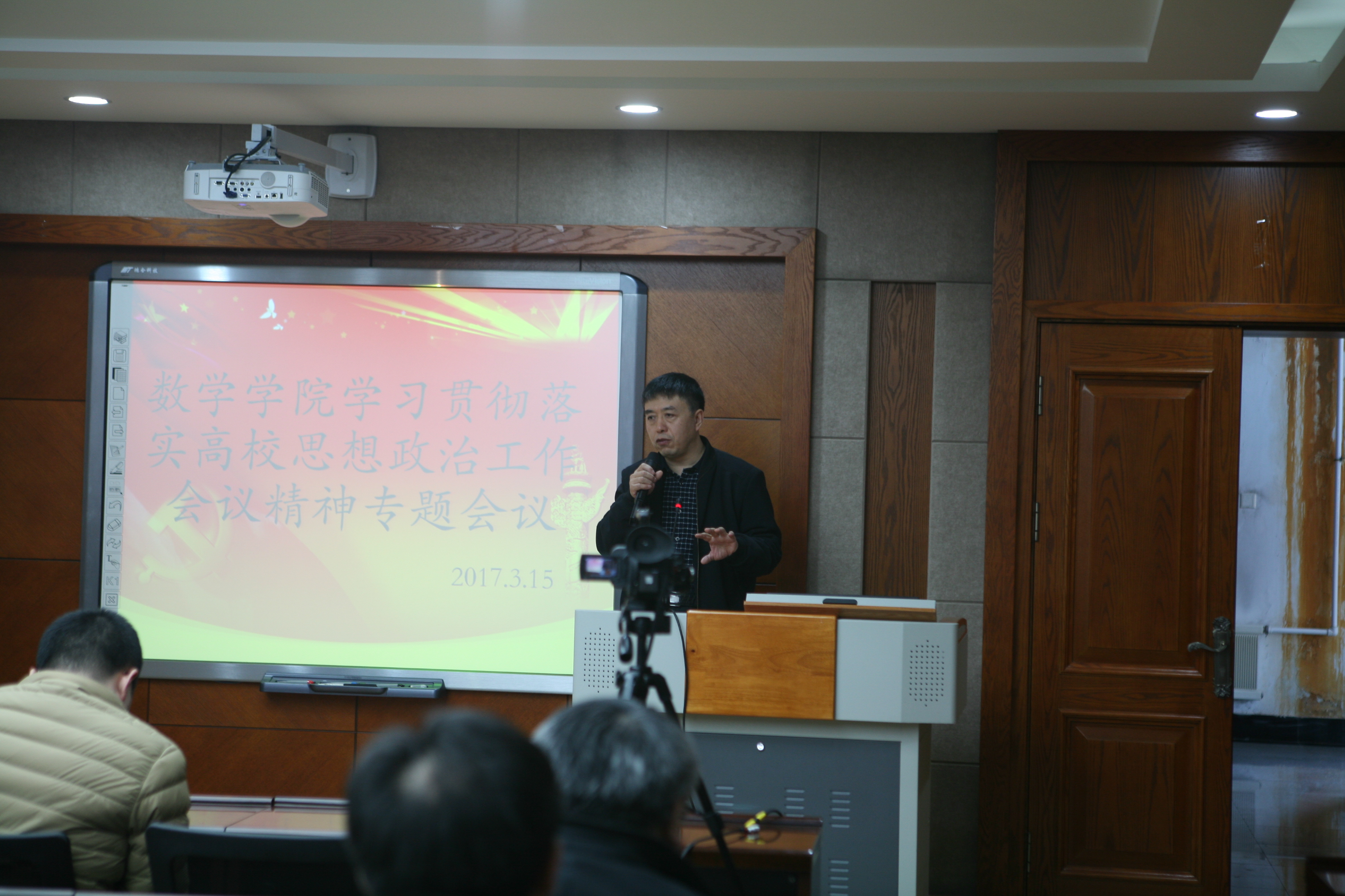 3月15日下午,bb贝博艾弗森官方网站在数学楼一楼报告厅召开全院教职工大会,专题学习和传达全国高校思想政治工作会议精神。会议由院长李辉来同志主持。