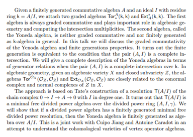 报告题目:Finite generations of Yoneda algebras for complete intersections