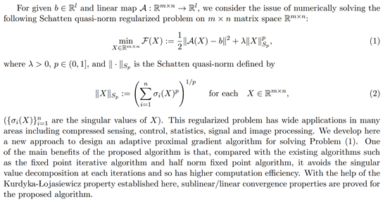 报告题目:An Adaptive Proximal Gradient Algorithm for the Schatten Quasi-norm Regularized Problems