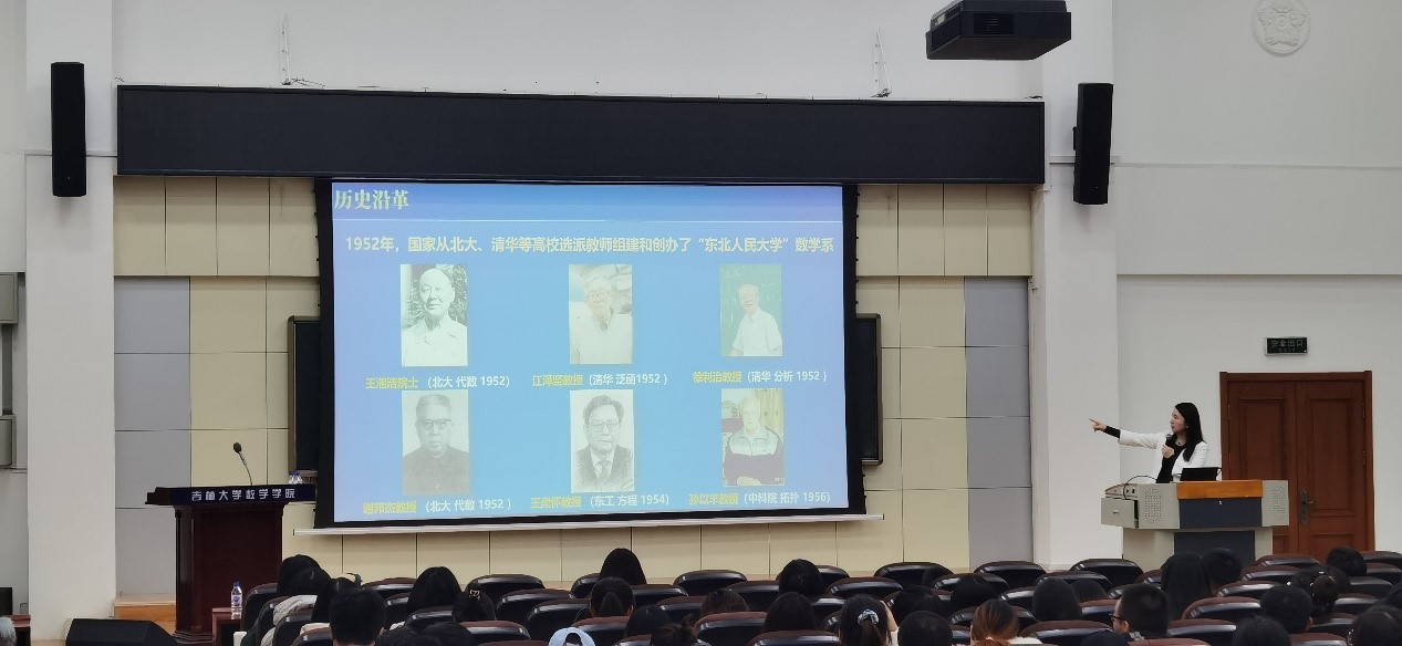 第二项内容,张然教授向同学们讲述了bb贝博艾弗森官方网站数学学科近70年的奋斗历程,从先辈们创系兴学到扎实的教学传统,从潜心科研到人才培养,从“十四五规划”到一流学科建设,生动地诠释了“踏实肯干、求真务实、无私奉献”的吉大数学精神。