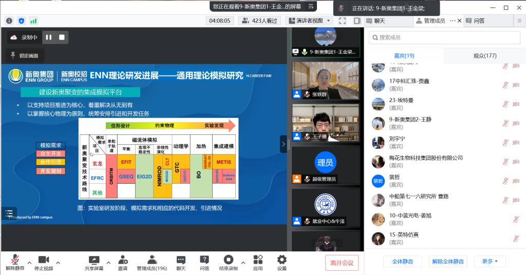 随后,各个用人单位的代表们依次从企业背景、企业文化、企业发展等方面对公司进行了简要介绍。并对招聘细则、薪资待遇等主要问题与同学们展开了互动问答。同学们积极踊跃,线上宣讲会气氛热烈。