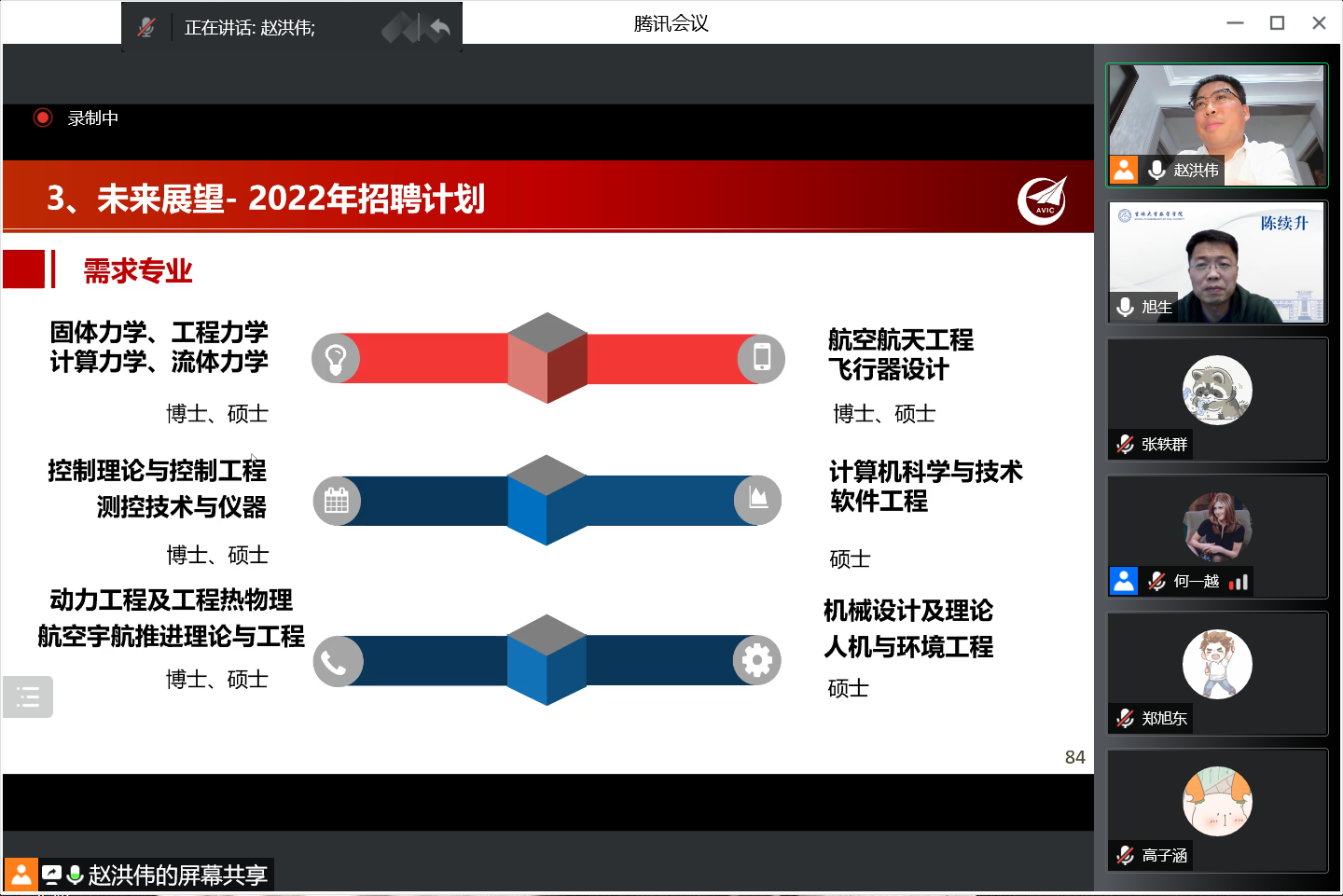 会上,赵老师分别从“一个数学人在强度所的十四年”,“高科技转化的艰辛之路”,“强度所及高科技转化具体情况汇报”和“学长要对你说”四个方面展开宣讲,并简单介绍了中国飞机强度研究所的具体情况及相关人才引进政策。