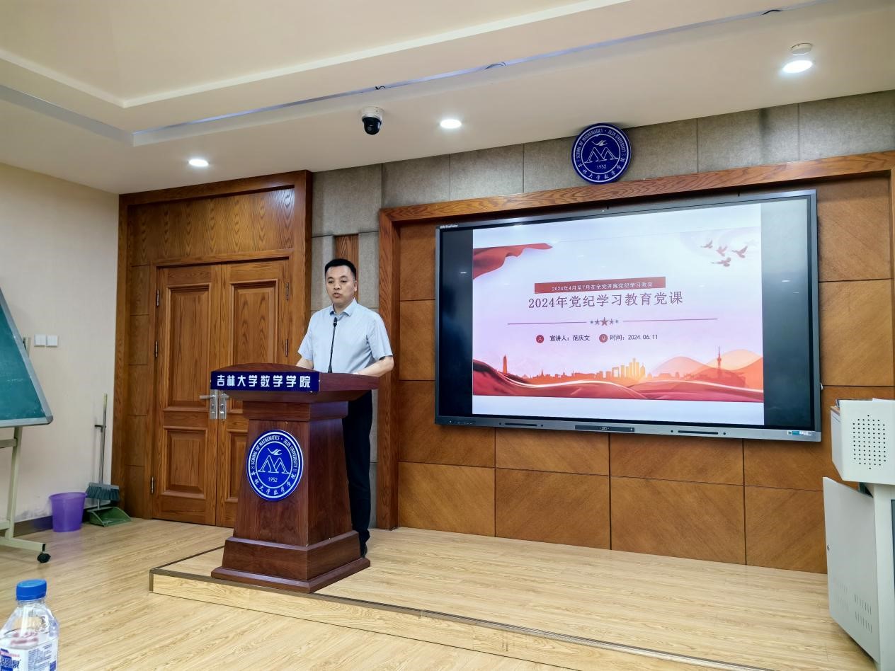 为深入学习贯彻习近平总书记关于党纪学习教育的重要讲话和重要指示精神,认真落实校院两级党委工作要求,深研细读《中国共产党纪律处分条例》,推进学院党纪学习教育走深走实。2024年6月11日,bb贝博艾弗森官方网站党委副书记兼副院长范庆文在数学楼一楼报告厅为博士生第一党支部全体党员讲授了党纪学习教育专题党课。