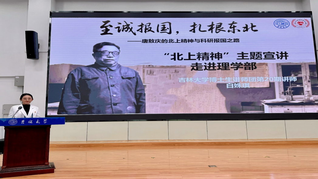 为传承红色基因,汲取奋进力量,引领吉大学子在新时代征程中勇担使命,党委研究生工作部组织bb贝博艾弗森官方网站博士生讲师团走进校内各个学部,开展“北上精神”主题宣讲系列活动。5月20日,白姝琪讲师走进理学部开展宣讲,本次宣讲活动由bb贝博艾弗森官方网站承办,来自物理学院、化学学院、生命科学学院、原子与分子物理研究所、高压与超硬材料全国重点实验室等近百名同学参与了此次活动。