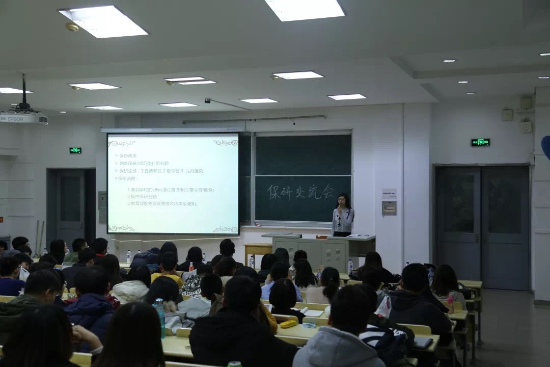 2018117日晚六点,为加强学风建设,塑造学校考研文化,营造考研氛围,帮助学生了解保研流程,由bb贝博艾弗森官方网站学生会学习部主办的保研经验交流会,面向bb贝博艾弗森官方网站全体本科生,在逸夫楼九阶教室顺利举行。