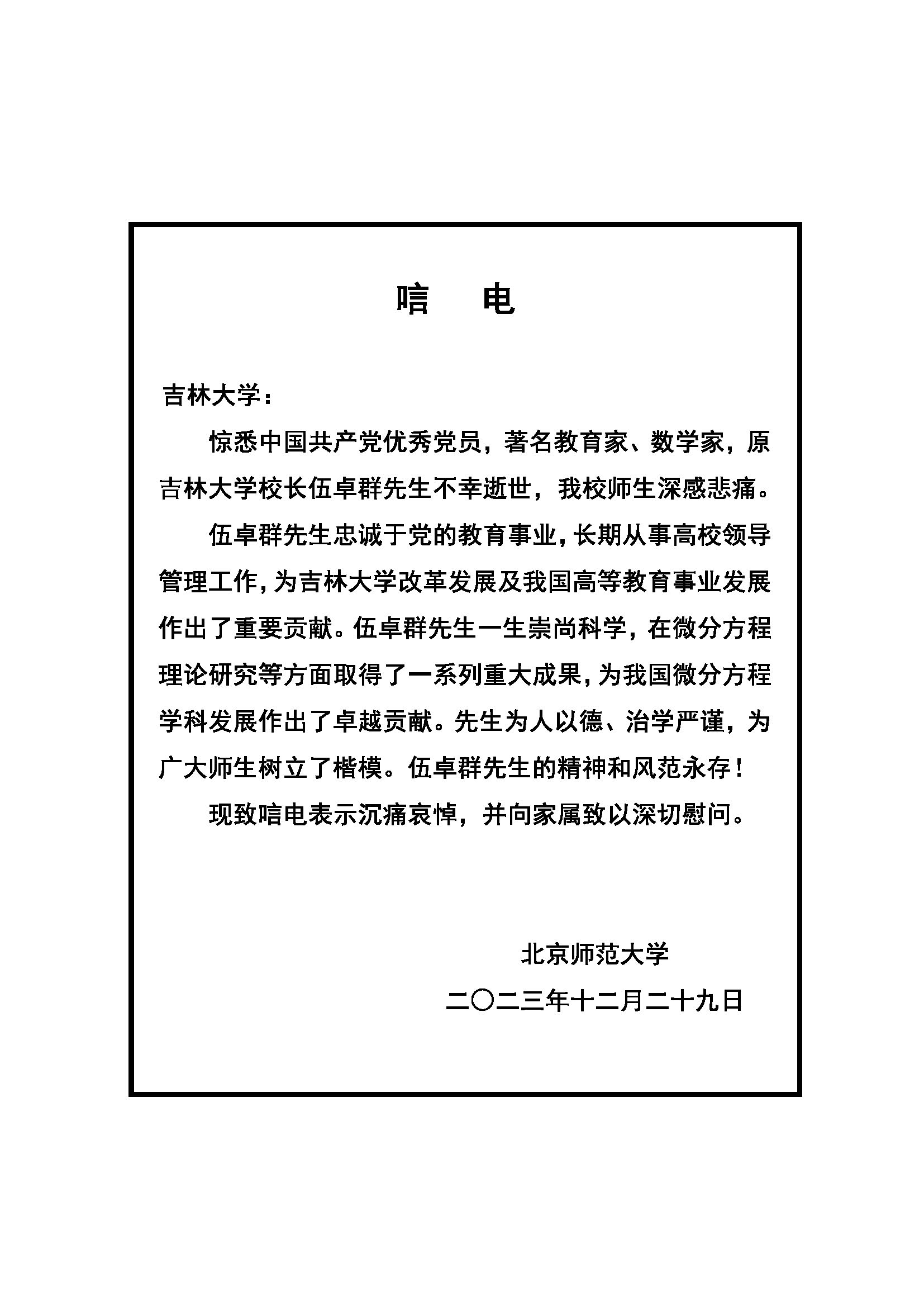 北京师范大学唁电